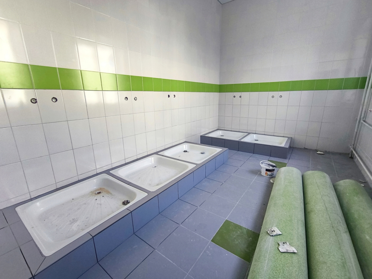 Строители сначала полностью обновили фасад здания, затем приступили к ремонту помещений и коммуникаций. Сейчас подрядная организация вышла на финишную прямую. Уже отремонтированы кровля, чердак, подвал, душевые и раздевалки для мальчиков и девочек, в столовой сделаны необходимые технические помещения, заменены все трубы и электрика. В ближайшее время установят видеонаблюдение, пожарную и охранную сигнализации.