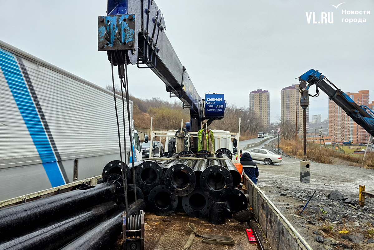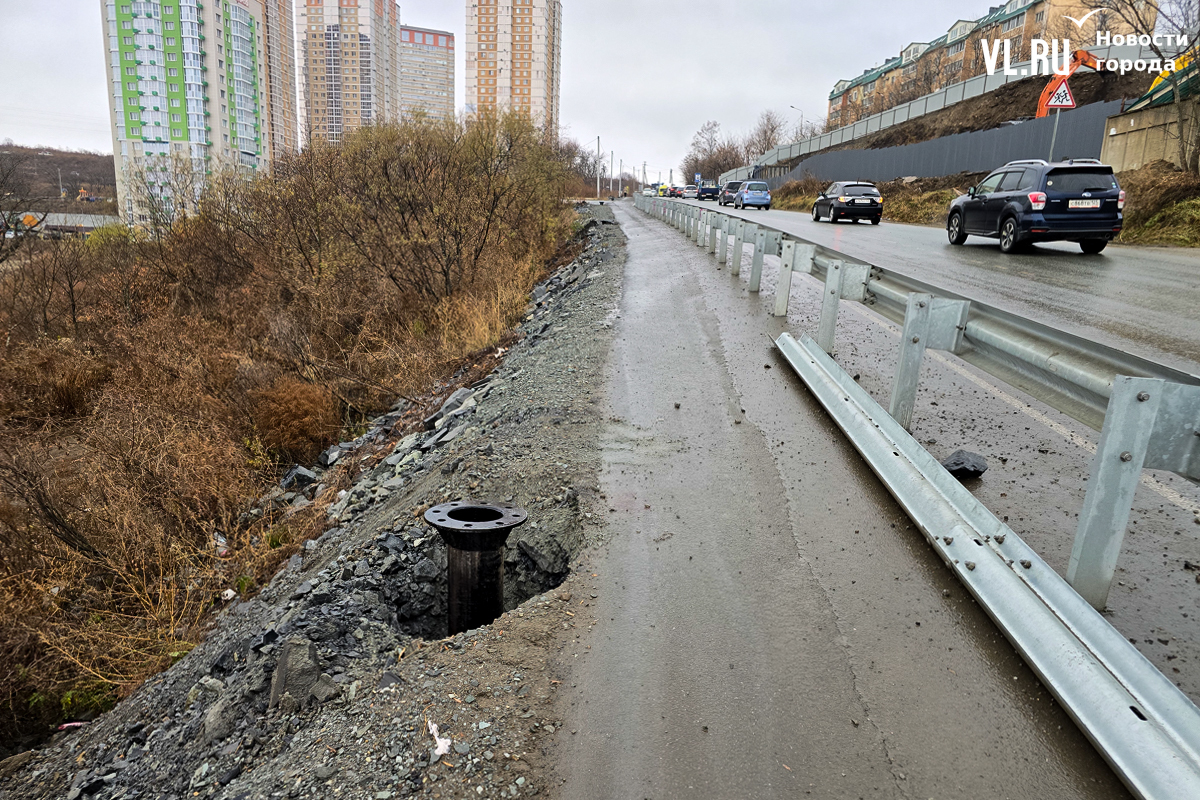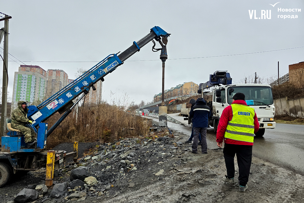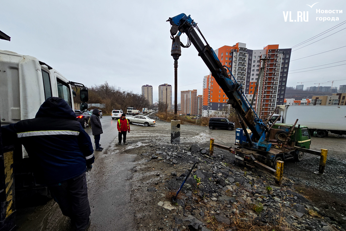 На Патрокле работы проводит компания «Энерготрейд», она была единственным участником закупки. Подрядчик начал бурить отверстия под закладные, но произошло «недоразумение по-владивостокски». На встречу к буровой установке вышел представитель компании «СпецСУ», которая в этом году ударно асфальтирует на Патрокле внутренние районные дороги. Оказалось, что несколько опор проходят ровно посреди предполагаемого проезда.