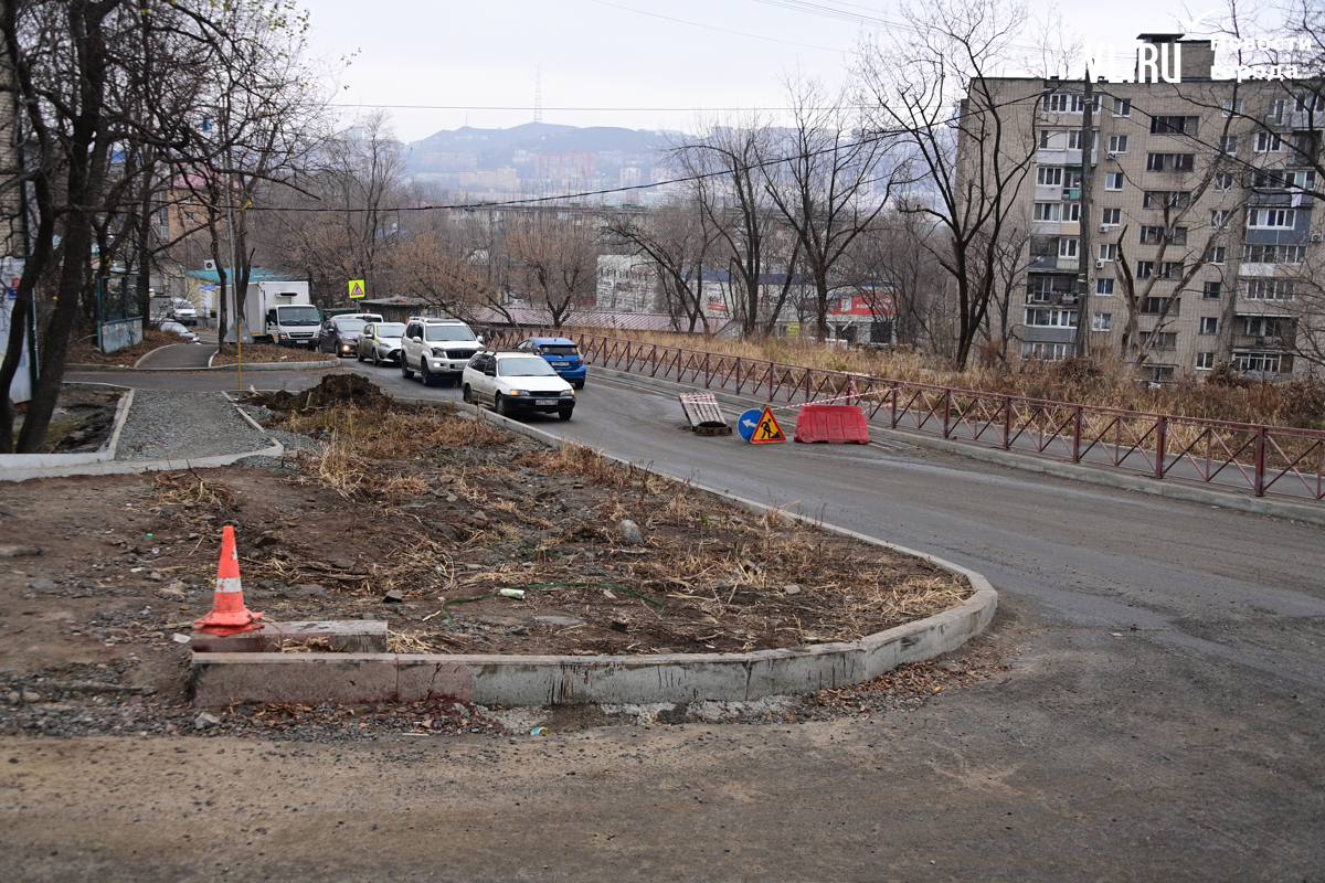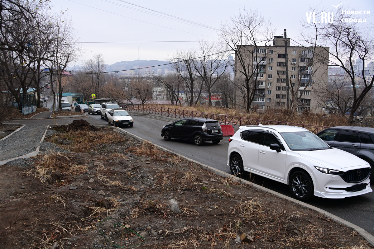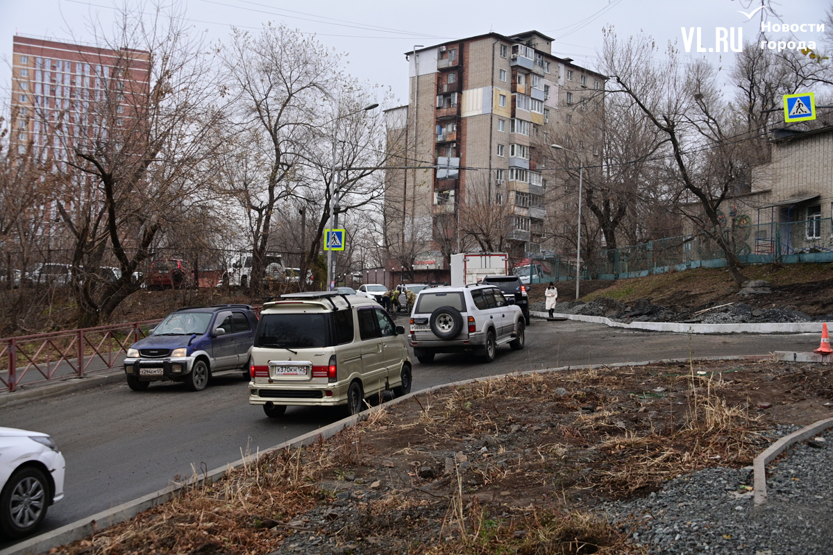Жаловаться на это место водители начали ещё летом, практически сразу, как стартовал ремонт. Как тогда отмечали в Центре организации дорожного движения Владивостока (ЦОДД), здесь по проекту предусмотрены двухметровые тротуары. При этом ширина полосы, до которой сузили дорогу, является нормативной – 3,5 метра.