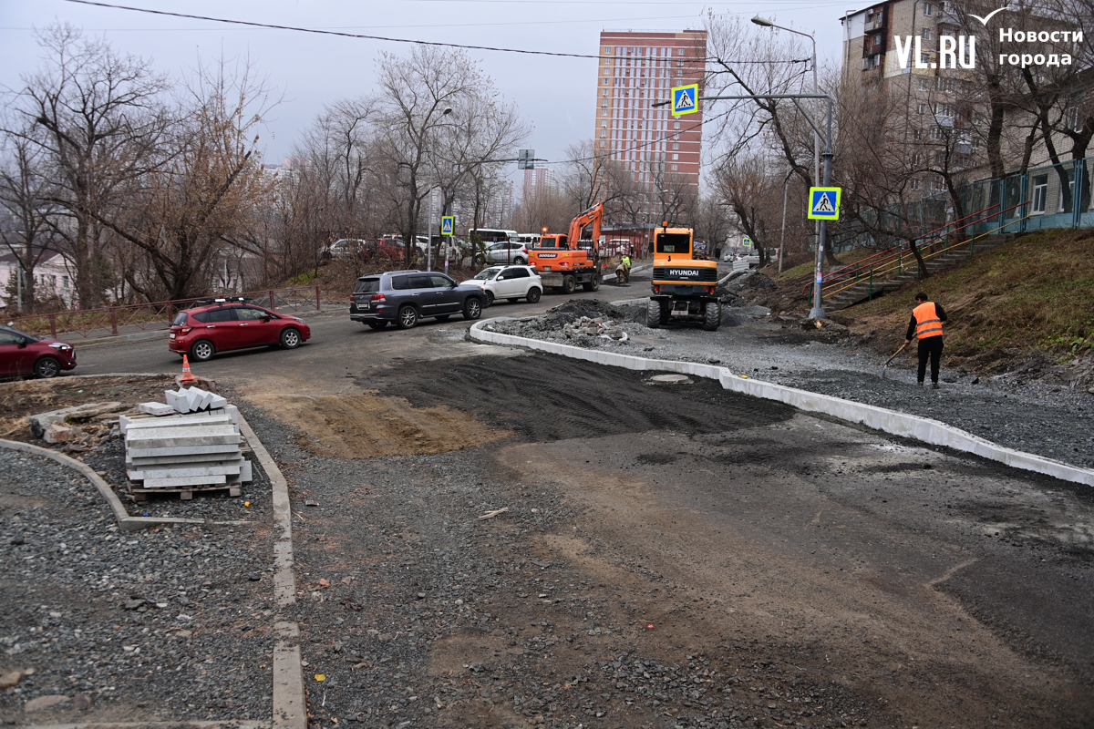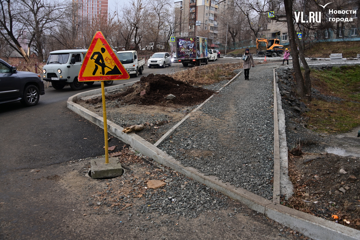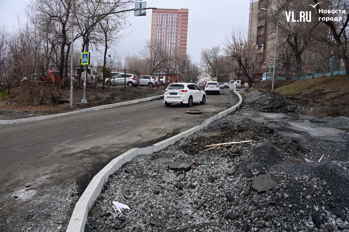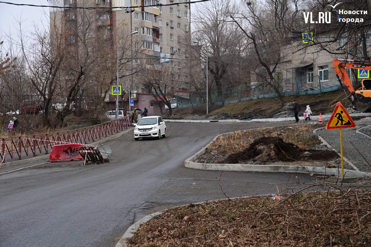 Жаловаться на это место водители начали ещё летом, практически сразу, как стартовал ремонт. Как тогда отмечали в Центре организации дорожного движения Владивостока (ЦОДД), здесь по проекту предусмотрены двухметровые тротуары. При этом ширина полосы, до которой сузили дорогу, является нормативной – 3,5 метра.