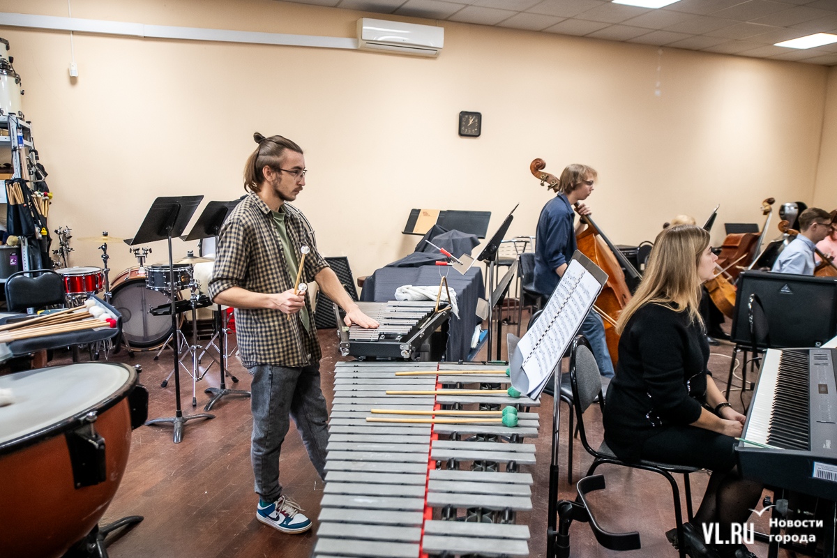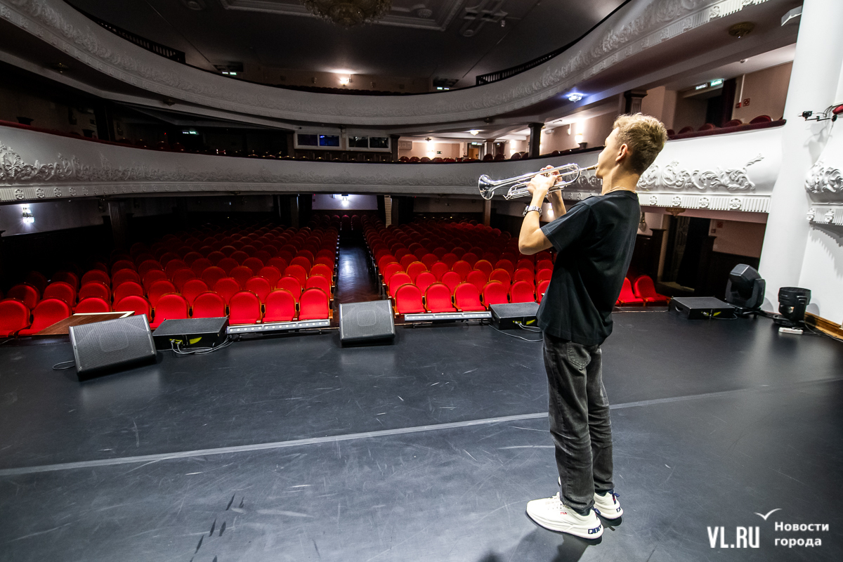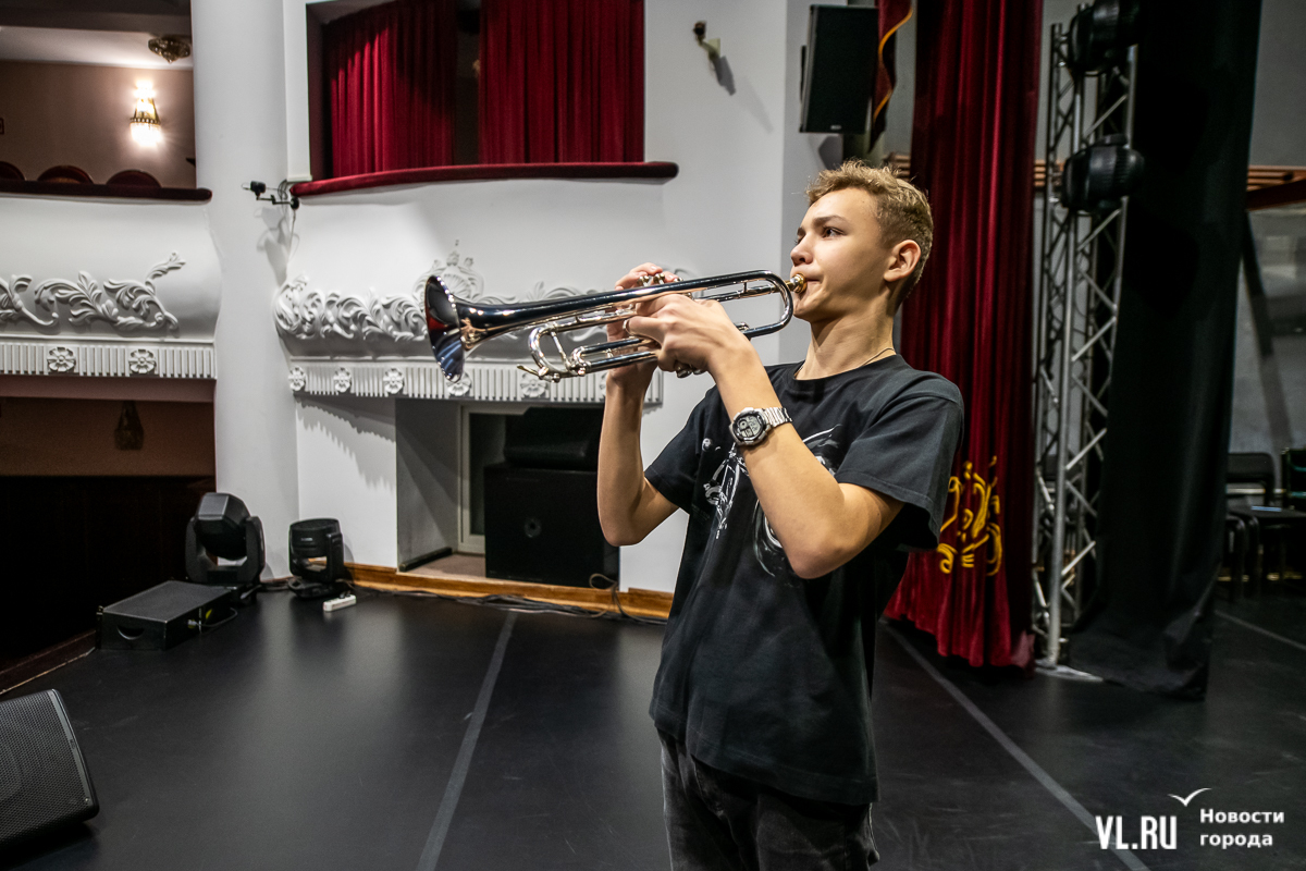 …Музыканты начинают двигаться к этой планке рано. В большом зале, который утром обычно пустует, поёт труба. Музыкант играет не на сцене, а за кулисами. Познакомились – Вадим Воронов учится в музыкальной школе и иногда играет с Тихоокеанским симфоническим. Работал в совместном концерте, когда приезжал оркестр из китайского Шэньяна. Вадим совсем не смущается: попросили журналисты сыграть – вышел на авансцену, и по залу поплыл живой звук. Он допускает, что придёт сюда работать, но учиться дальше хочет в Москве.