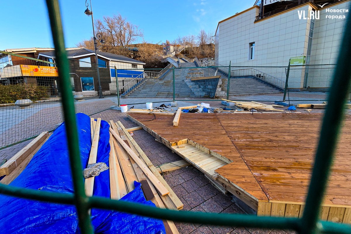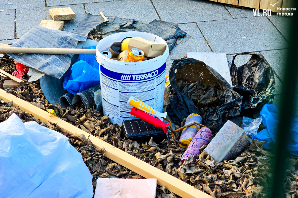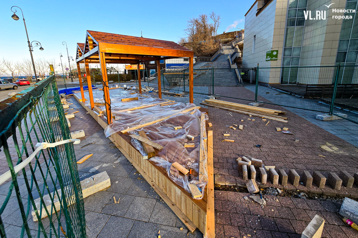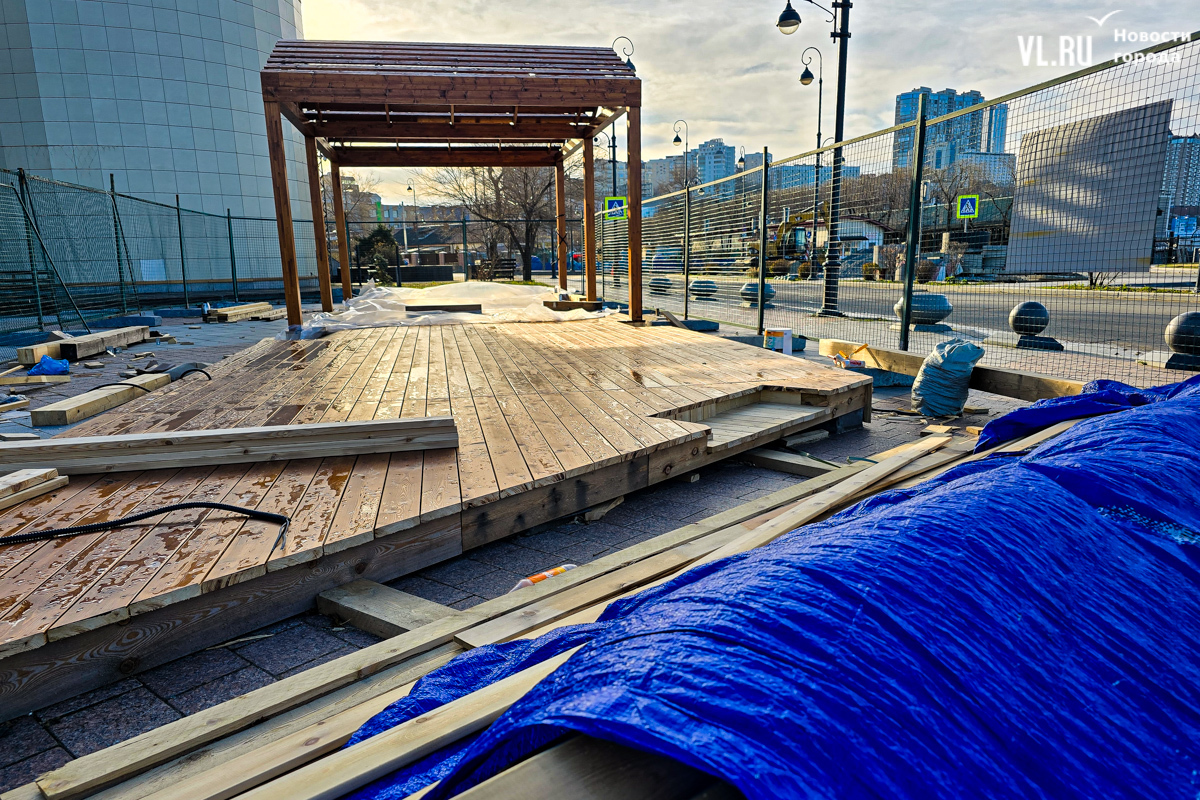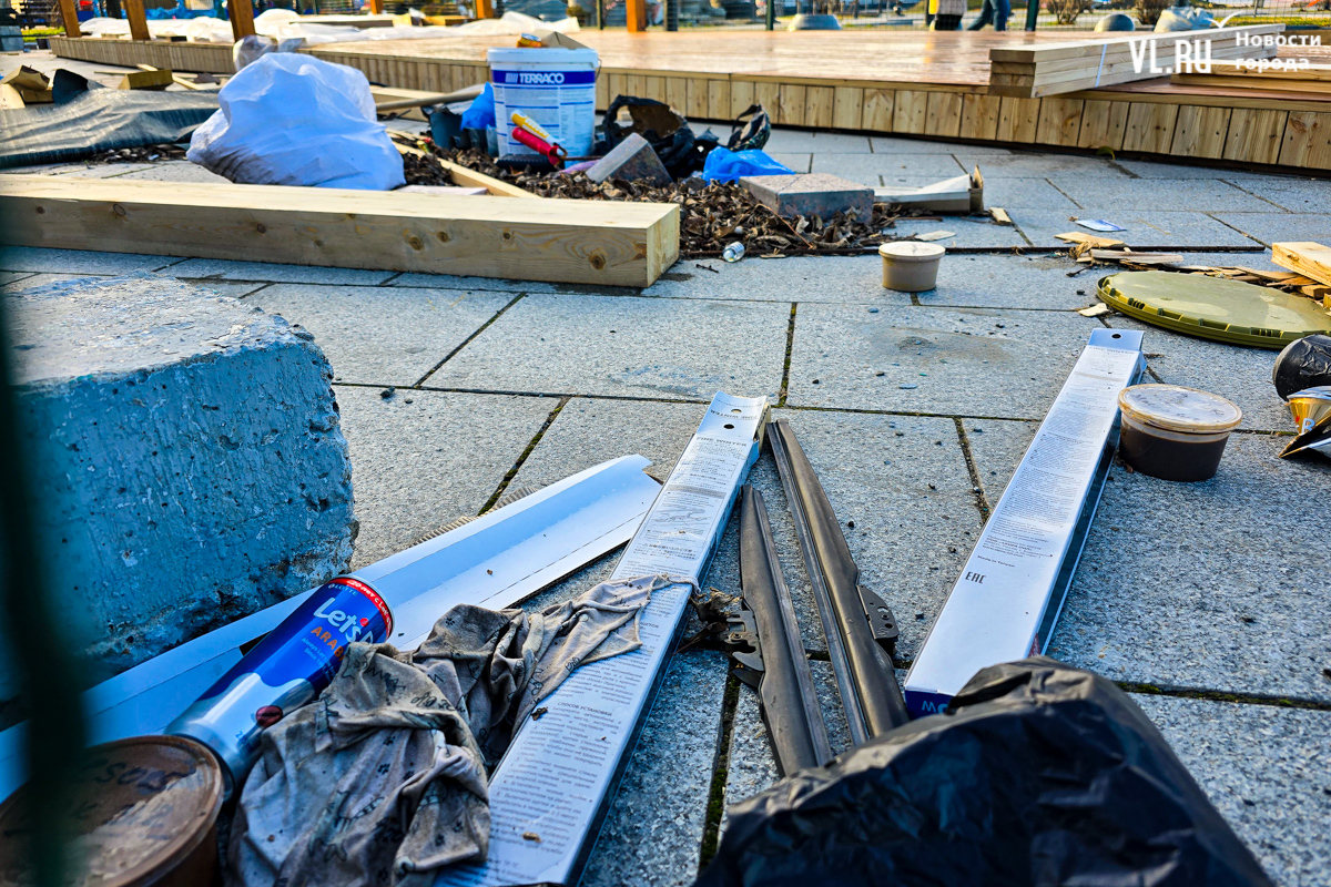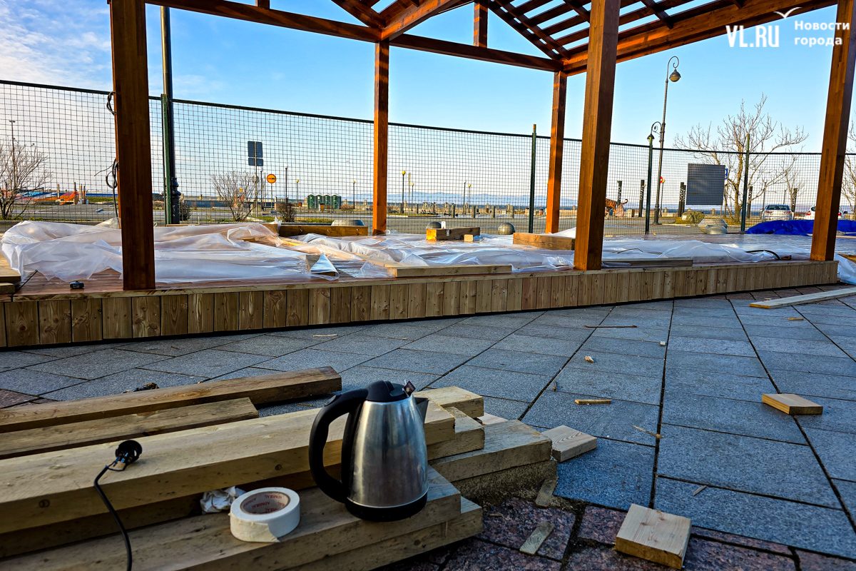 Работы по возведению новой зоны отдыха во Владивостоке, возле океанариума на улице Батарейной, притормозились. Завершить строительство должны были до конца октября, однако территория до сих пор огорожена. За забором можно увидеть только деревянный настил и навесы, а также брошенные строителями личные вещи. Самих строителей давно уже не видно. Как сообщили в ДОМ.РФ, за чей счёт создаётся общественное пространство, срок сдачи объекта перенесли на декабрь.