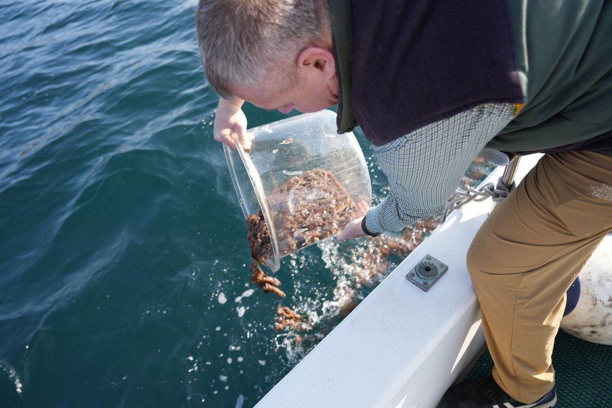 В акваторию выпустили более 124 тысяч особей молоди дальневосточного трепанга, такое количество специалисты оценили как достаточную компенсацию ущерба, нанесённого природе при создании центра.