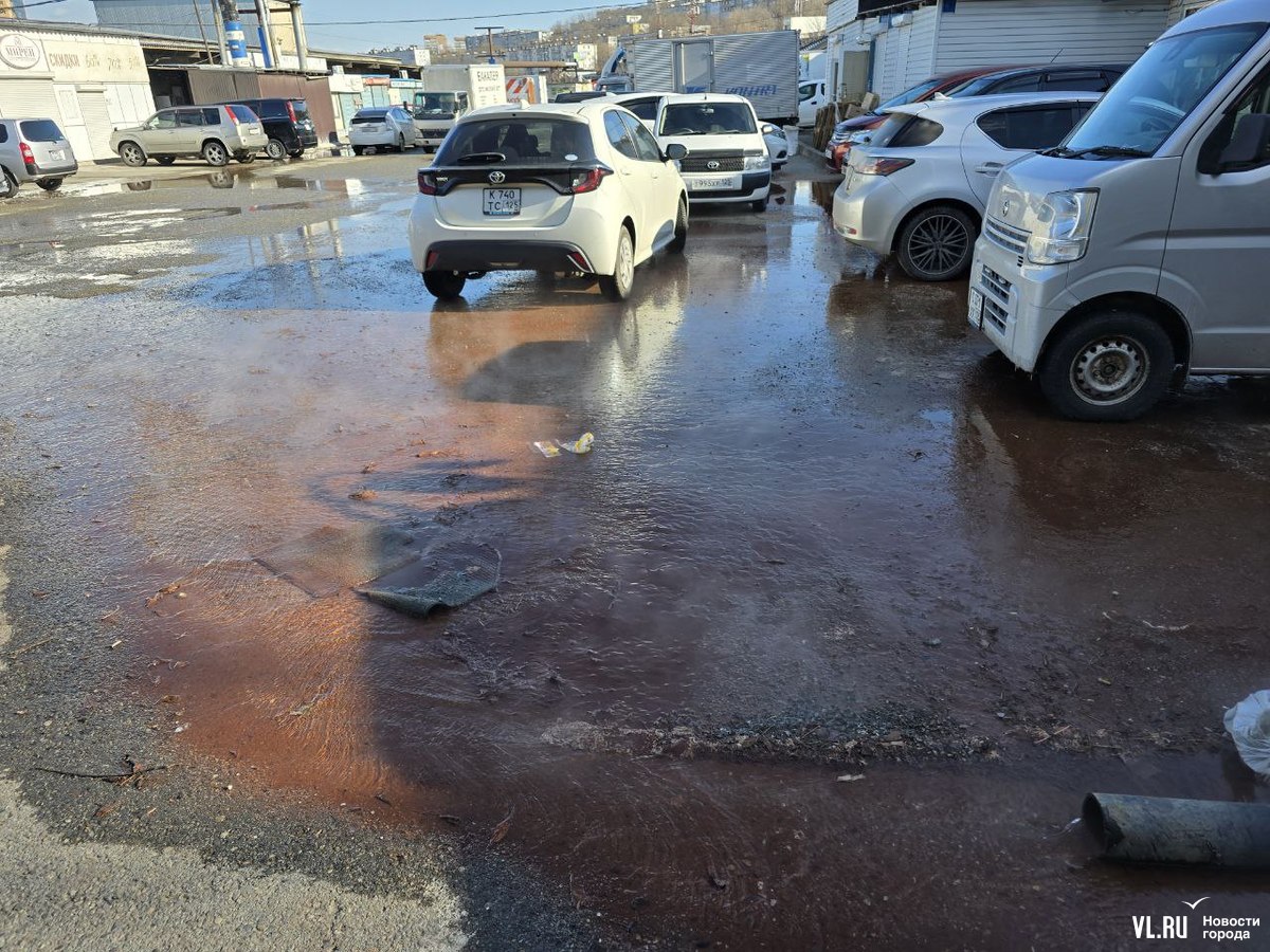 Над «родником» парит трубопровод, в пресс-службе ДГК сразу предупредили вопросы редакции: это продувка, технологический процесс. На участок сразу выехала бригада, которая выяснила, что течь произошла не на сетях ДГК. Во ВПЭС сообщили, что их сетей там нет, но будет организовано обследование.