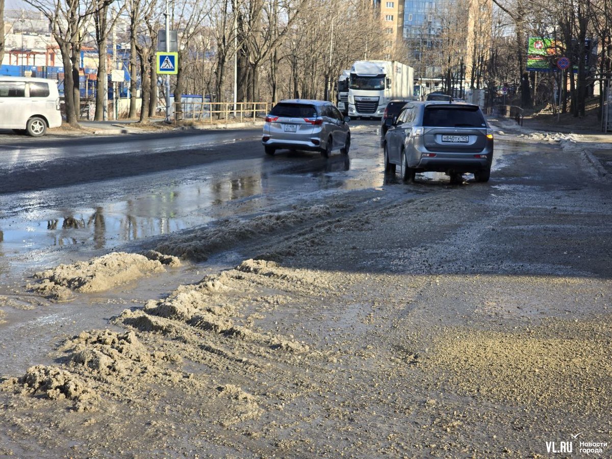 Колоссальных размеров течь открылась на Калинина. Ручей бьёт из подпорной стены у теплотрассы в районе оптовой базы, стекает, смешиваясь со слякотью, по склону дороги и разливается огромным блестящим на солнце озером по дороге у ТЦ «Калинка». Сотрудники базы даже организовали водоотвод, но сегодня течь вышла из берегов. ДГК и ВПЭС сообщили, что эта проблема не на их сетях. А вода тем временем начинает замерзать.