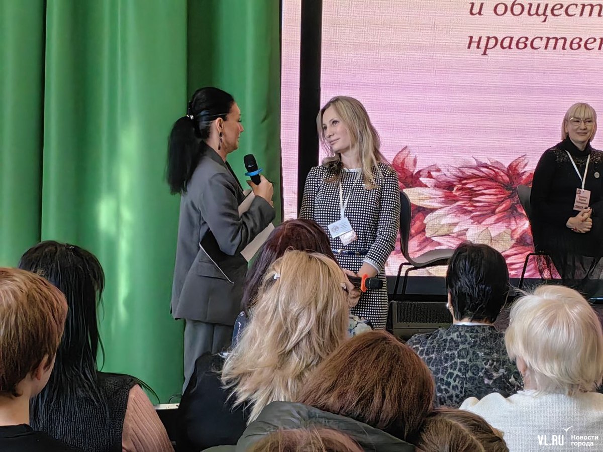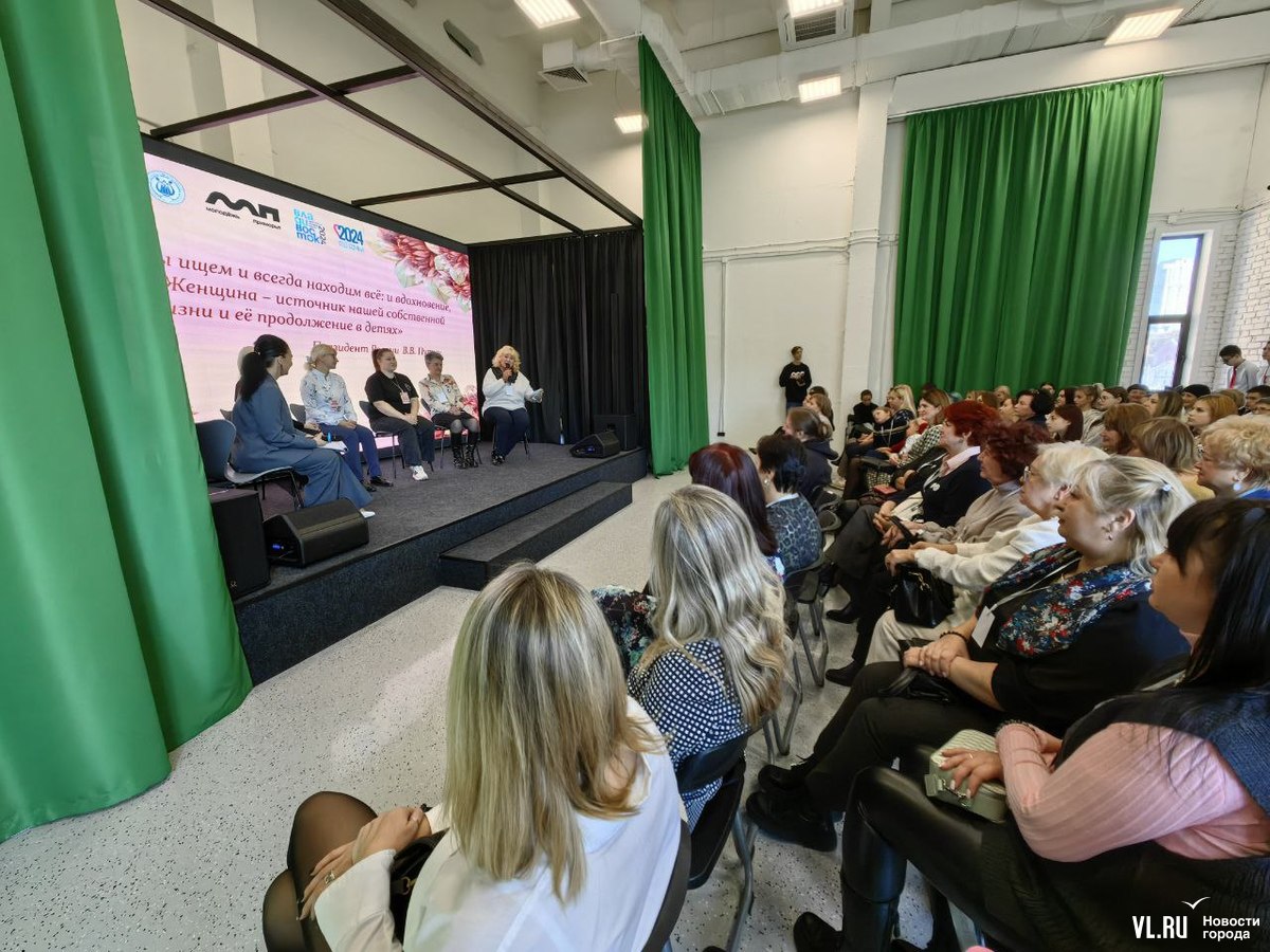 Рядом, в креативном пространстве «Молодёжь Приморья», прошёл форум женщин Приморского края. Мамы и по совместительству специалисты в своих сферах и активистки социальных организаций обсуждали, кем же важнее быть женщинам – матерями и хранительницами домашнего очага или реализованными специалистами, какие материнские навыки полезны в работе, а какие профессиональные – в семье, как поделить на детей любовь, когда их много, как найти любовь в сердце, если поздно вечером ребёнок сообщает, что завтра в школу нужно принести поделку. Спикеры рассказывали личные истории и делились своим опытом. Иногда микрофон отправлялся в зрительный зал.