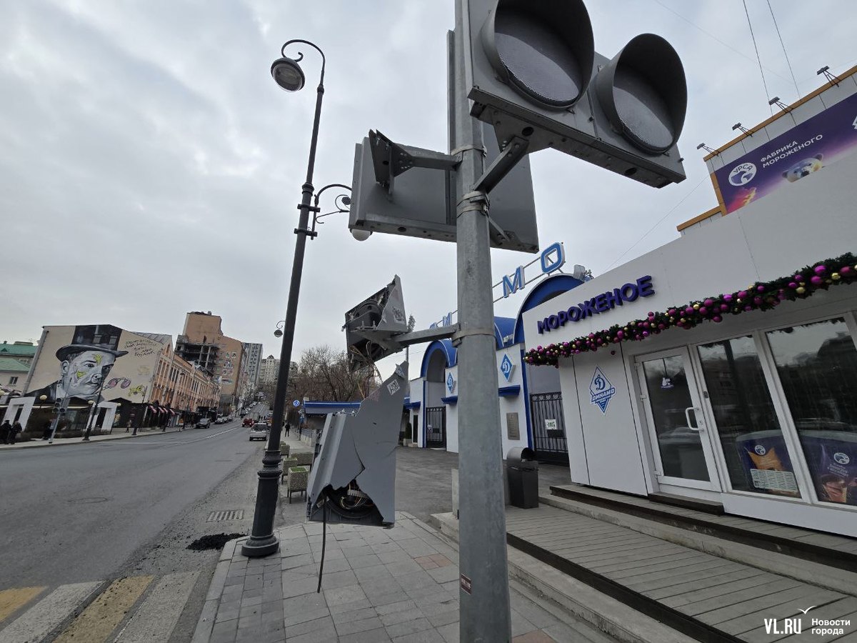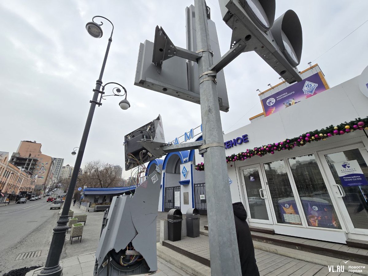 Пострадал светофорный объект как со стороны стадиона, так и на противоположной стороне улицы – там тоже отсутствует одна секция.