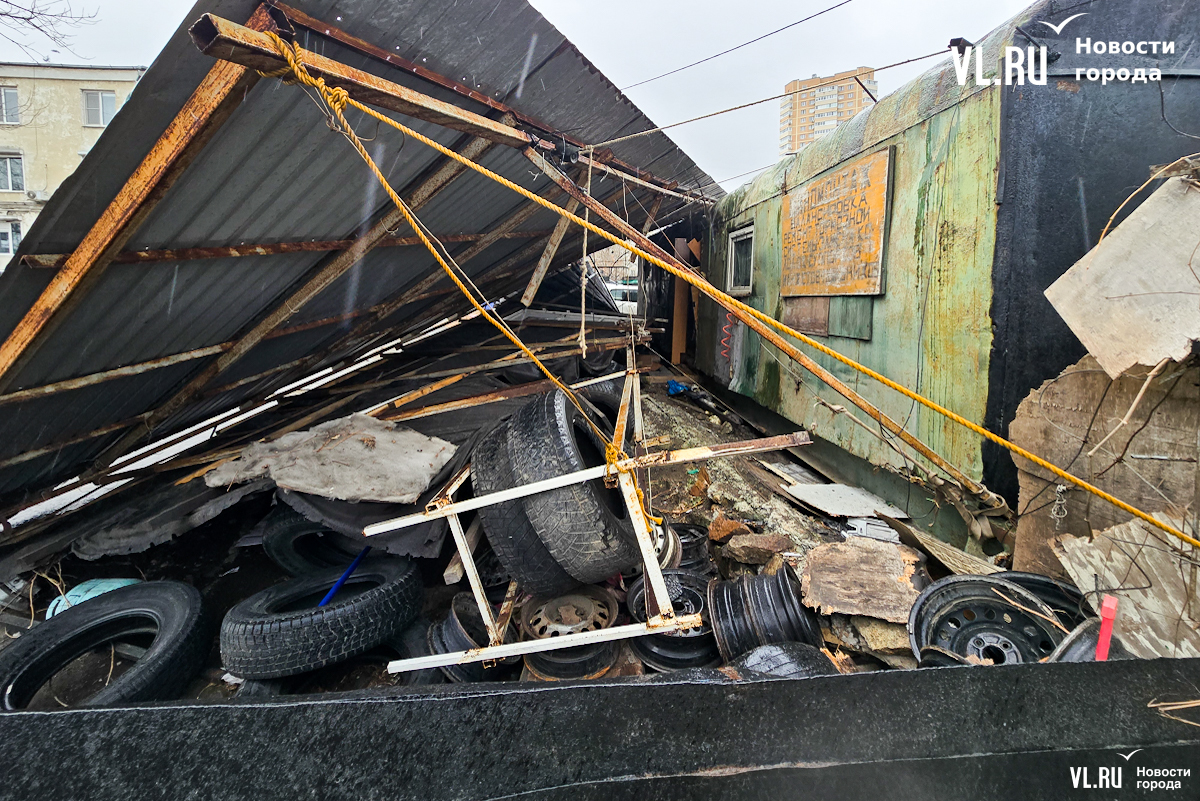 12:18: На улице Шепеткова ветер повалил крышу шиномонтажки. О пострадавших не сообщается. Корреспондент редакции на месте никого не застал, только груду мусора и колёс под хлипкой конструкцией, которая от такого ветра обязана была сломаться.