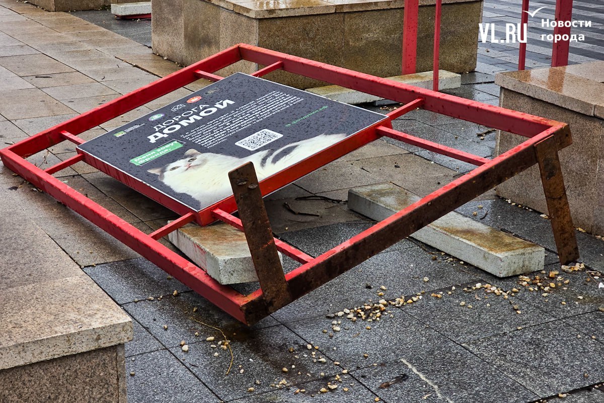 На Пограничной ветром повалило стенд с паспортом объекта, на котором размещена информация о ремонте улицы Авроровской. На нескольких улицах упали заборы – такое произошло на Маяке, на остановке «Постышева». Не пощадил ветер и фотовыставку на Суханова.