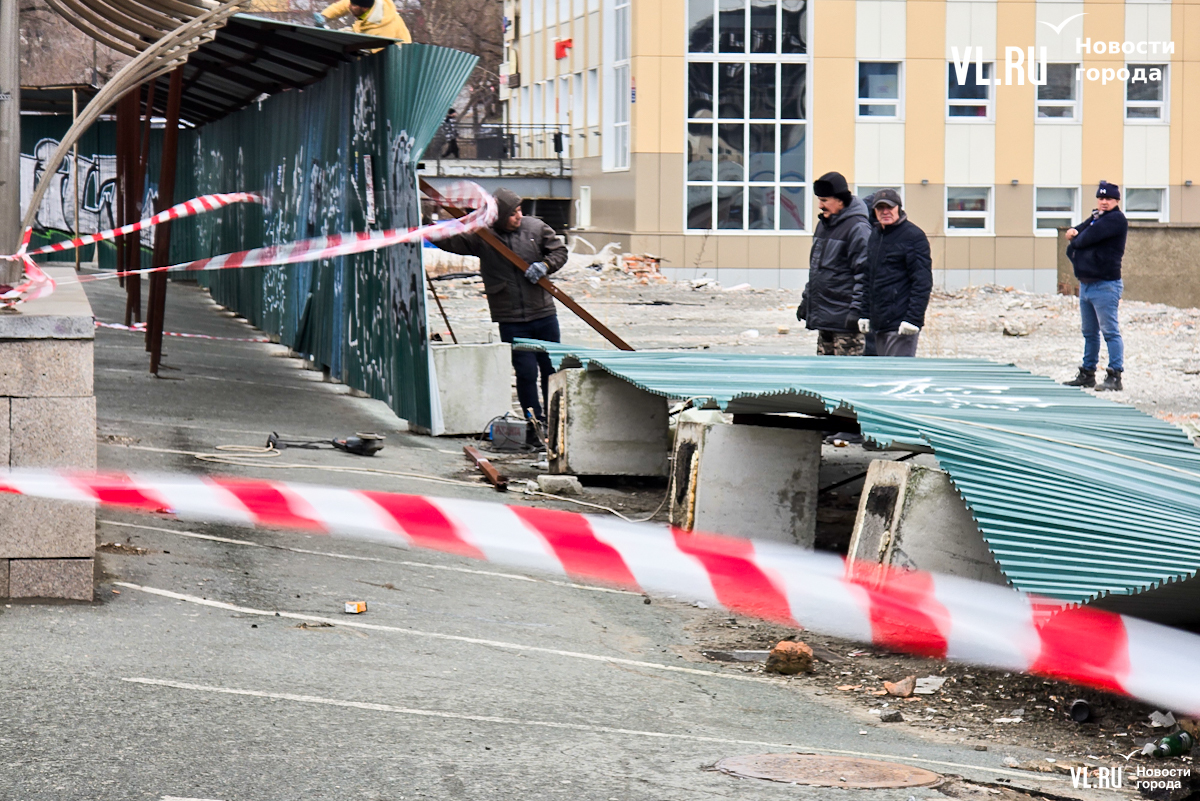 12:23: На Постышева упало несколько секций забора вокруг бывшего ТЦ «Максим». Сейчас там остался котлован после сноса торгового центра, в него как раз и упала часть забора. Остальное ограждение сейчас разбирают строители, несмотря на сильный ветер.