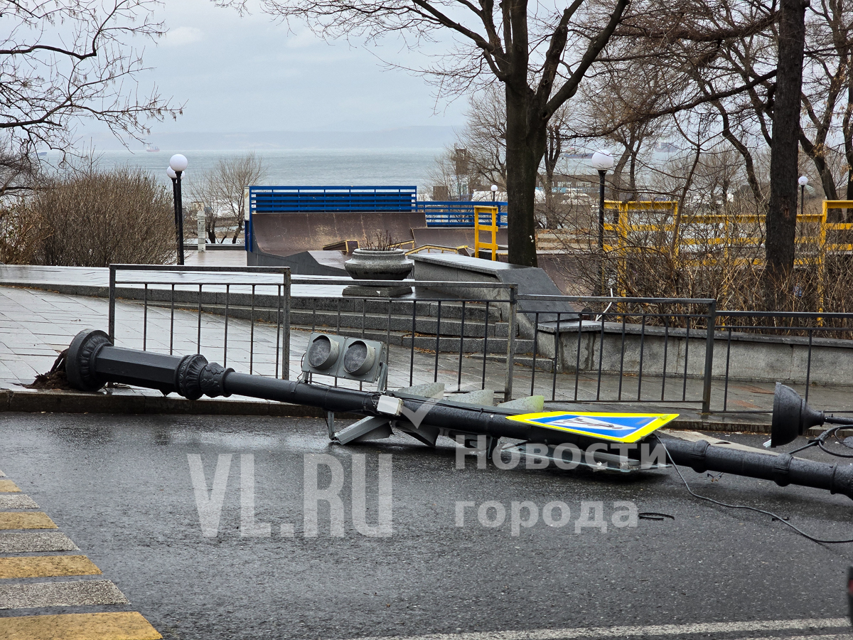 Во вторник, 26 ноября, из-за сильного ветра сломался и упал на проезжую часть фонарный столб на перекрёстке улиц Пограничная и Светланская. На нём также был светофор, но он и до падения не работал. Рабочие уже убрали преграду с дороги, правда, в процессе едва не рухнул соседний столб: внедорожник намотал провод на колесо и потянул опору за собой. Но аварии удалось избежать.