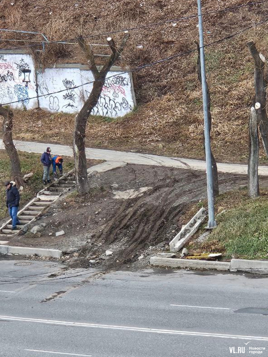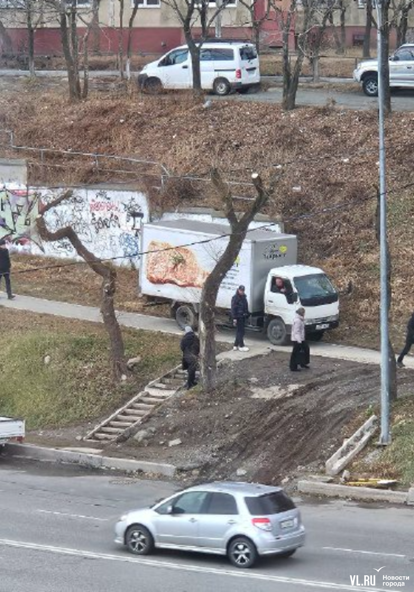 В апреле этого года сотрудники муниципального предприятия «Содержание городских территорий» установили столбики там, откуда грузовики сворачивали на тротуар. Но машины скорректировали маршрут и стали курсировать через косогор у лестницы напротив остановки «Окатовая 2». Оттуда до торгового центра ещё метров 100-150 пешеходной зоны.