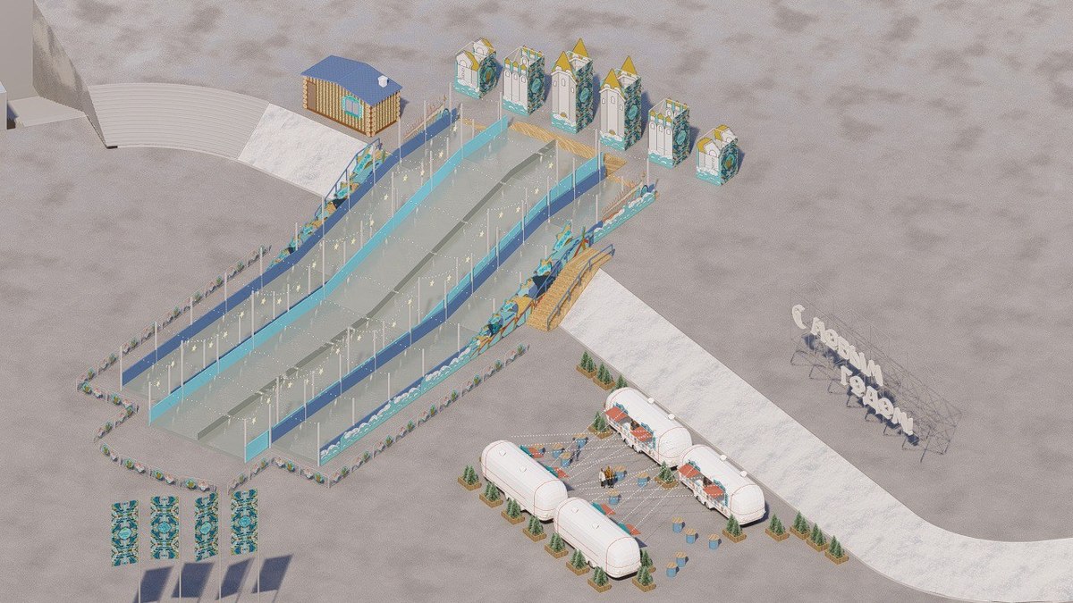 Как и ранее, ледовое поле ската будут делать из кубов льда. Общая длина горки составит 38,6 метра. Вход на неё будет на платной парковке со стороны здания правительства. Ширина горки не уточняется, но у неё будет три ската, следить за состоянием которых будет подрядчик. Горка будет освещаться гирляндой длиной 300 метров (белт-лайт), так что кататься можно будет и вечером.