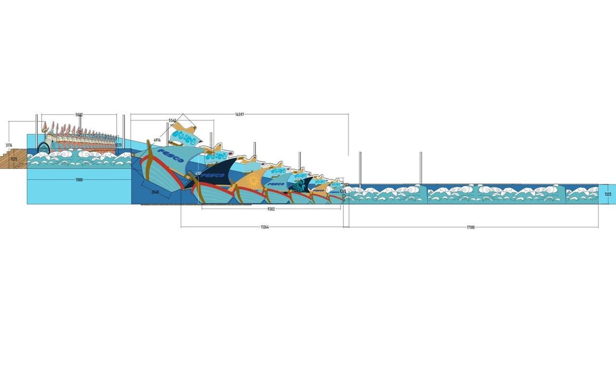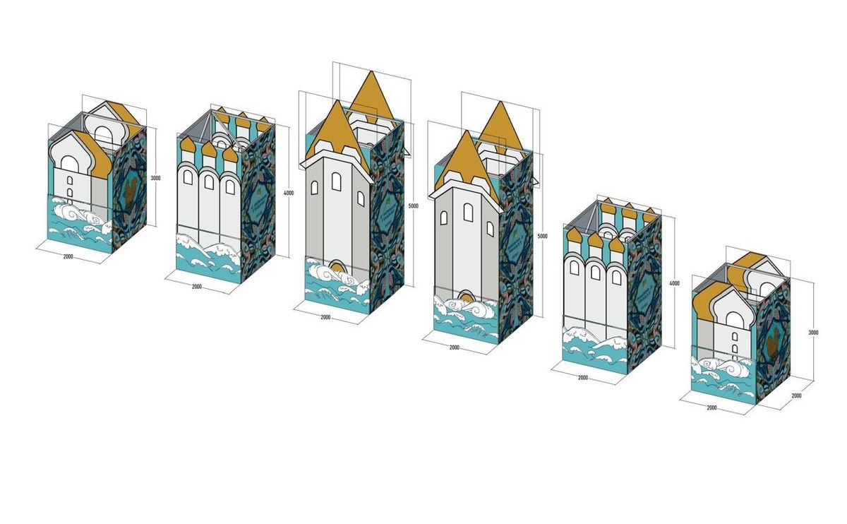 Подрядчик должен предоставить основу горки из металлоконструкций (металлический лаер), оформить их баннерами, построить шесть башенок, лестницы с перилами и, собственно, саму горку.