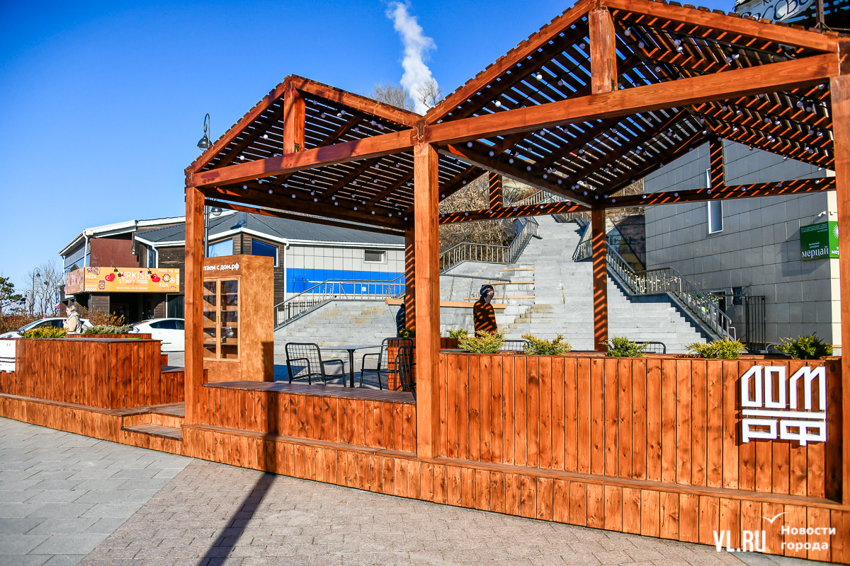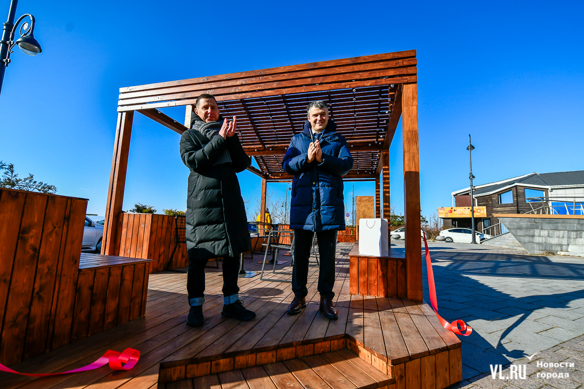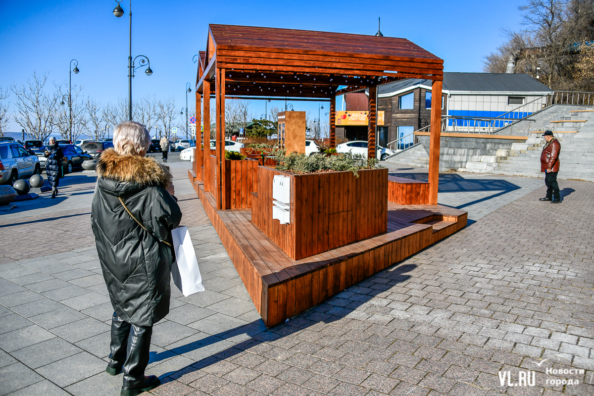 На набережной в районе улицы Батарейной построили две деревянные беседки-перголы с металлическими стульями и столиками, а также книжным шкафом из фанеры. Это место отдыха, на которое дал денег ДОМ.РФ. Его сегодня открыли торжественно с перерезанием красной ленты. В Инвестиционном агентстве Приморского края объясняют, что такие объекты строят, когда не понимают, как нужно дальше развивать территорию, и требуется создание «точек интереса».