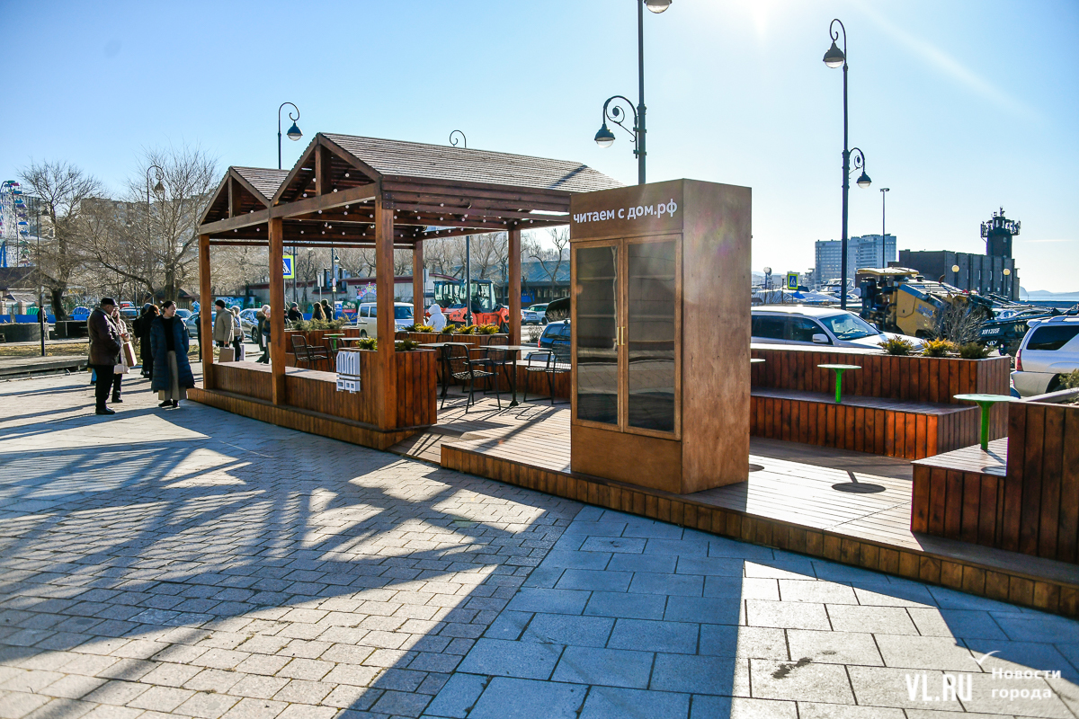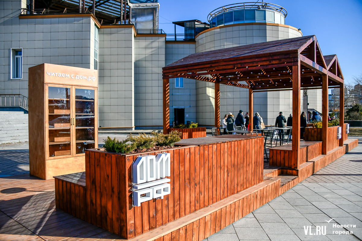 Перголу со столиками, скамейками, освещением и книжным шкафом строили почти два месяца. Директор департамента реализации социально-экономического потенциала перспективных территорий Инвестиционного агентства Приморского края Лилия Гиззятова рассказала, строительство подобных локальных площадок – тренд последних нескольких лет в урбанистике.