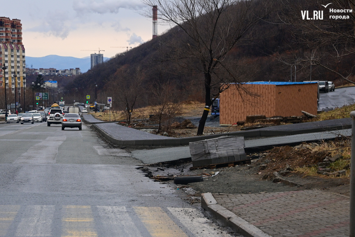 В администрации Владивостока уточнили, что все расширения, предусмотренные проектом, сохраняются. О том, что дорогу будут расширять целиком, речи не было. А будут они на подъездах к перекрёсткам, чтобы создать полосу для поворота. За пропущенные сроки подрядчику будут начислены штрафы. А что касается надколотых бордюров, то специалисты городского управления дорог проведут проверку. Всё, что не соответствует качеству, подлежит замене, а на все виды работ распространяются гарантии. Обрыв тротуара, где асфальт переходит в грунт, назвали временной мерой. Дальше подготовят и всё выведут в уровень.
