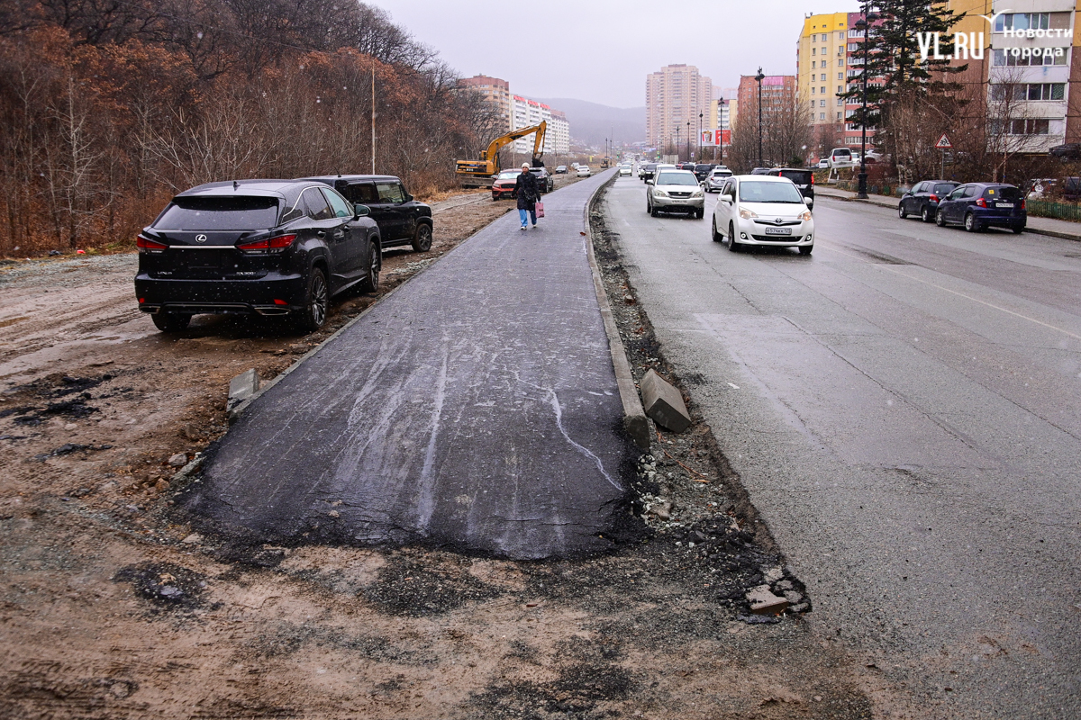 Контракт на проектирование и капитальный ремонт дороги в Снеговой Пади выиграло ещё в прошлом году АО «СпецСУ». Как сообщала администрация Владивостока, от поворота на Майора Филипова до развязки Седанка – Патрокл должны были благоустроить пешеходные зоны, отремонтировать проезжую часть, реконструировать перекрёстки и сделать дополнительную полосу на примыкании к трассе. Это относительно небольшой участок, где две полосы превращаются в «полторы». Ширина проезжей части после ремонта должна составить 13 метров, ширина тротуаров – 1-2,5 метра, укреплённая полоса обочины (где тротуара нет) – 0,5 метра.