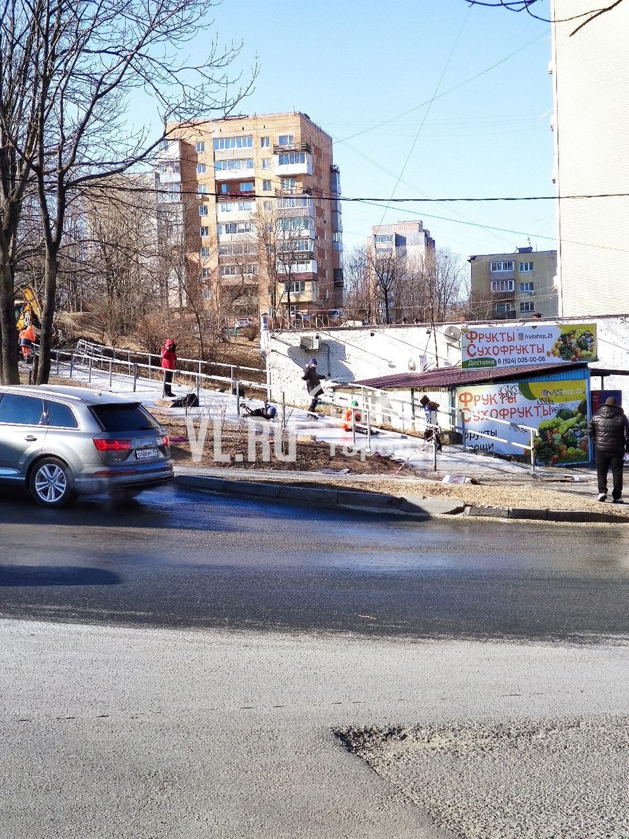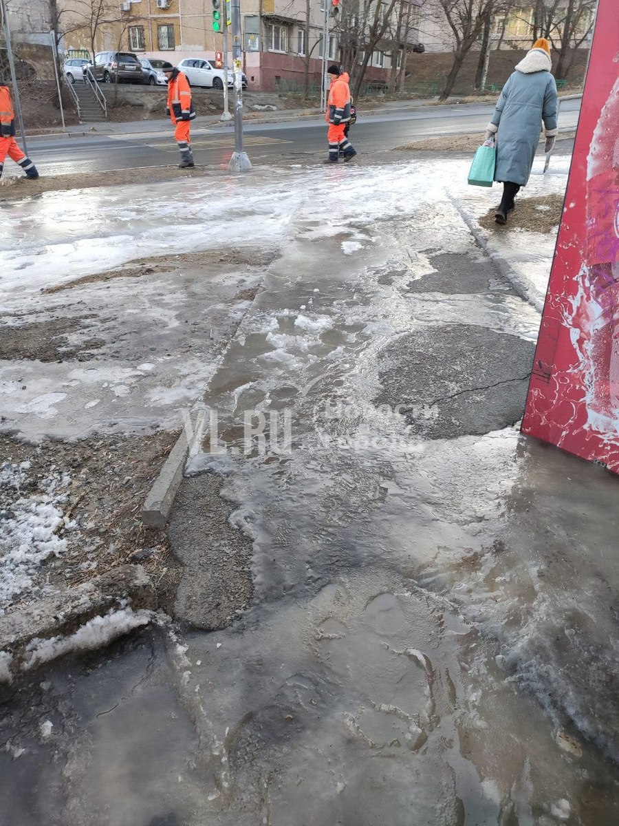 На Тихой утром в четверг, 19 декабря, произошёл порыв на сетях «Примводоканала». Без холодной воды осталось 16 домов – вместо кранов в квартирах она течёт по тротуару в районе Энерготехникума.