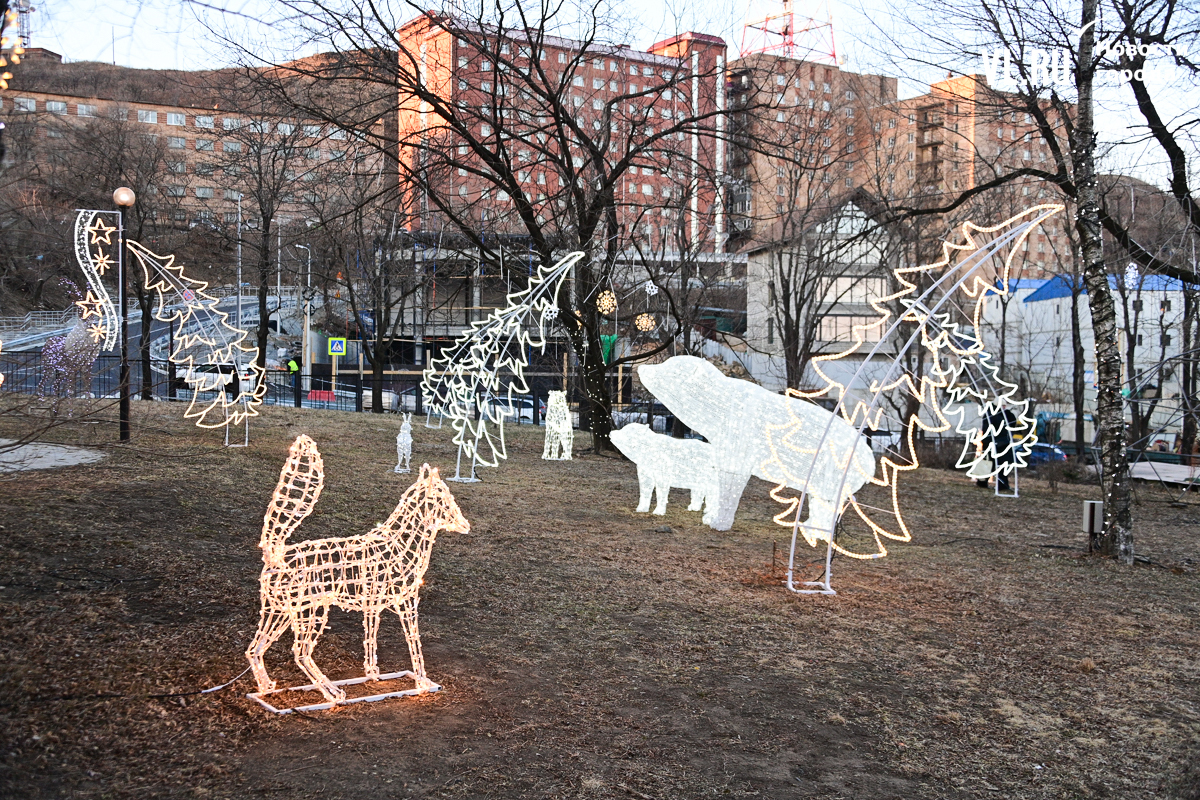 Во Владивостоке открылась новогодняя площадка в парке «Россия – Моя история». Работает он уже четвёртый год подряд, и каждый раз тематика украшений разная – в этом году здесь постарались сделать «сказочный лес». Всю зиму в нём будут работать каток и горка, а по вечерам будут включать иллюминацию и разводить два очага. В самом музее открылась бесплатная выставка, которая рассказывает про Новый год через историю ёлочных игрушек.