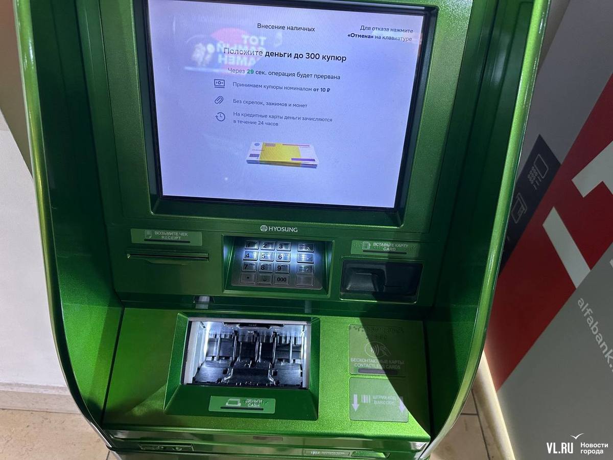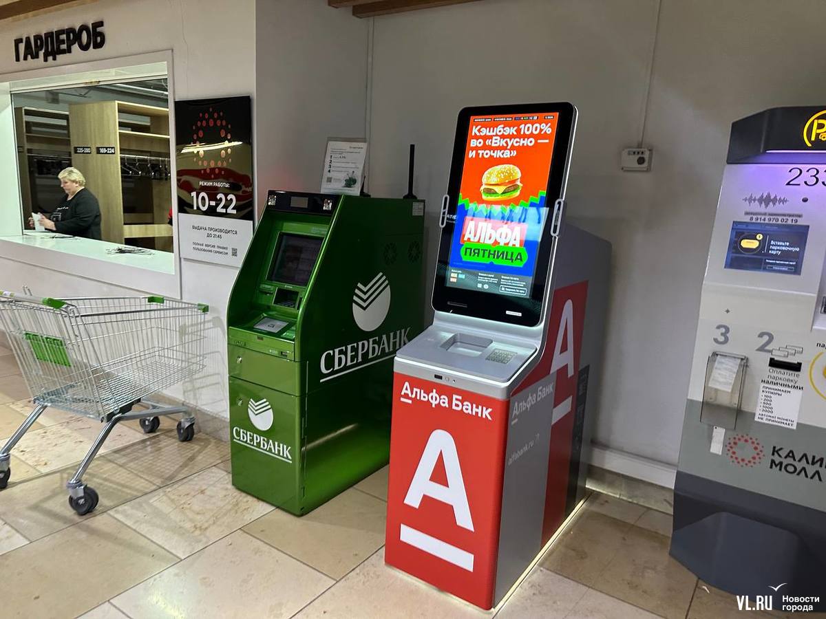 Первый банкомат, которому решил скормить деньги, стал Сбер. Вставил карту, ввёл ПИН-код и положил купюру. Терминал немного «прошуршал» и принял её. Рядом с банкоматом зелёного банка стоял красный терминал – Альфа банка. Он тоже без лишних раздумий смог принять купюру и зачислить её на счёт. Эти два купюроприёмника стоят на -2 этаже ТЦ «Калина Молл».