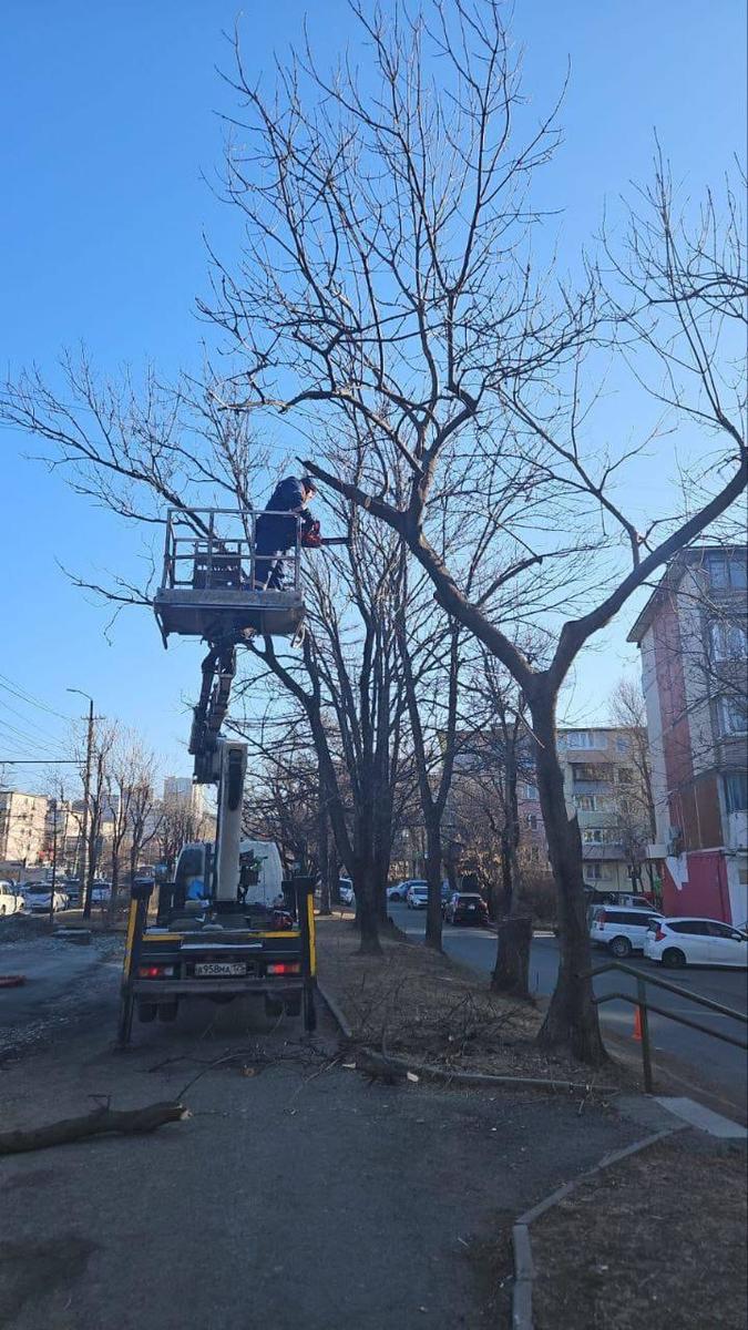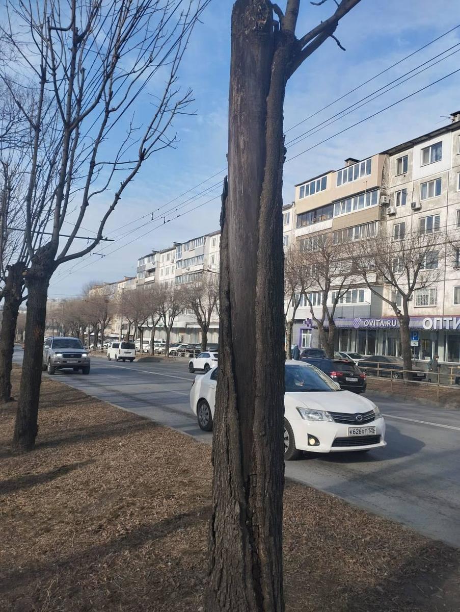 «Зелёный Владивосток» вырубит на улице Русской 28 деревьев, у которых есть повреждения и дефекты и которые угрожают пешеходам и машинам. Взамен в следующем году здесь высадят новые.
