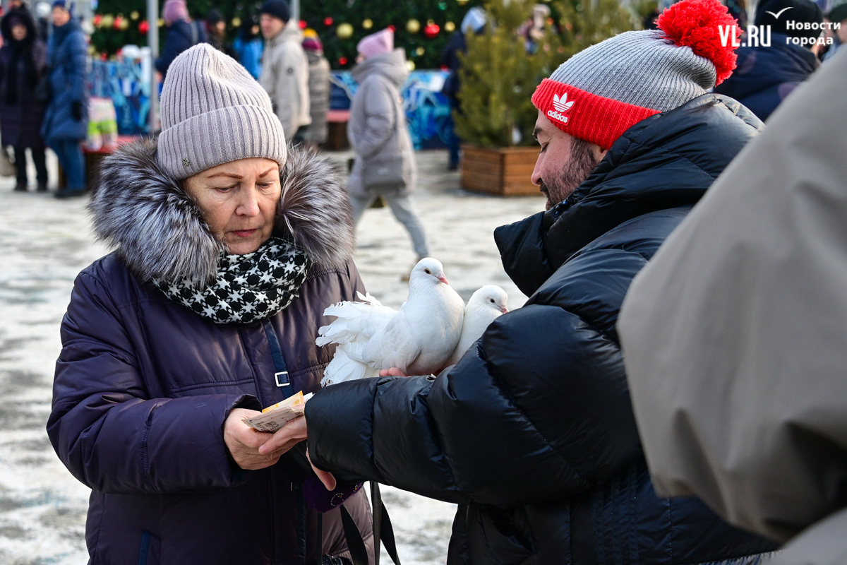 «Давай руку, посажу голубя. Давай вторую, – повелительно говорит владелец голубей. – Давай вторую, это парные голуби, их вместе нужно посадить. Давай телефон для фото».