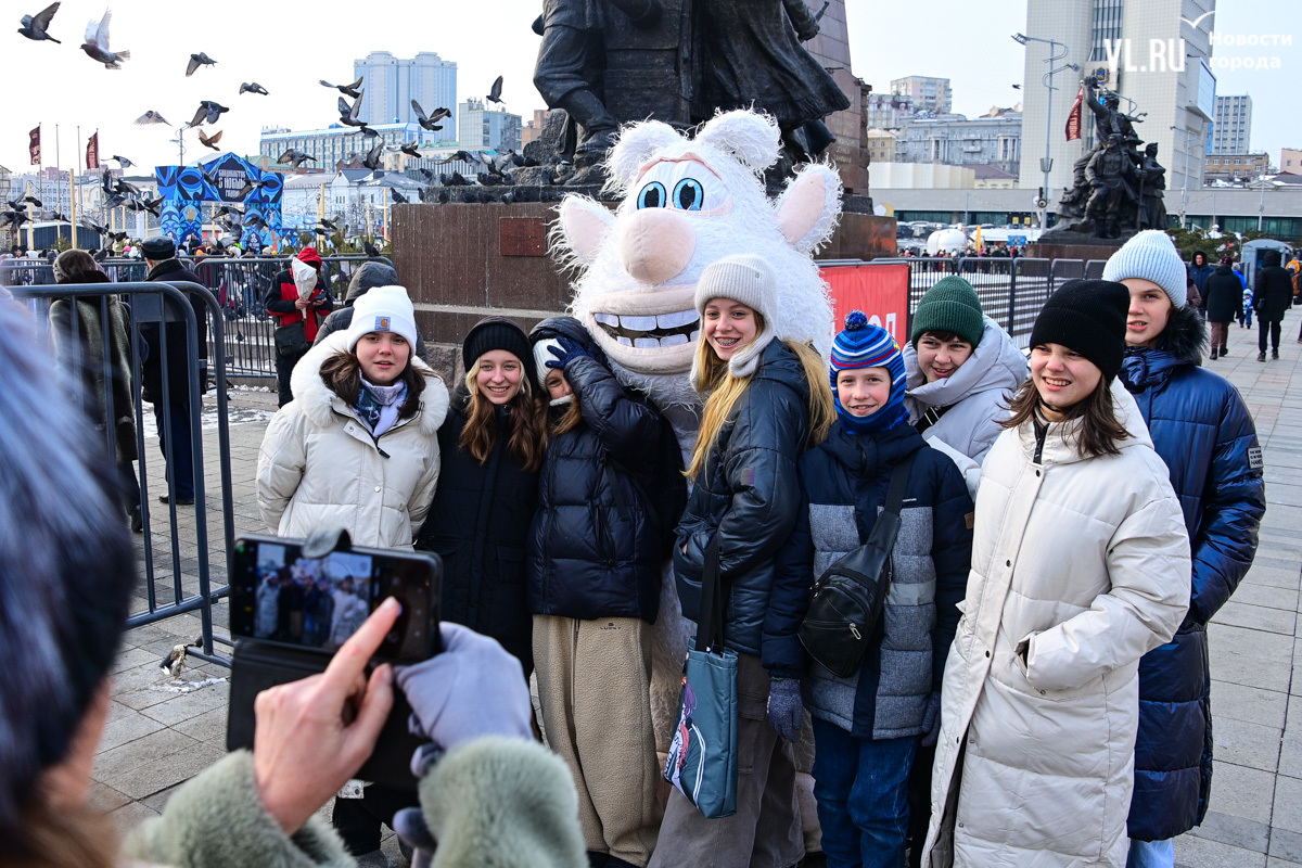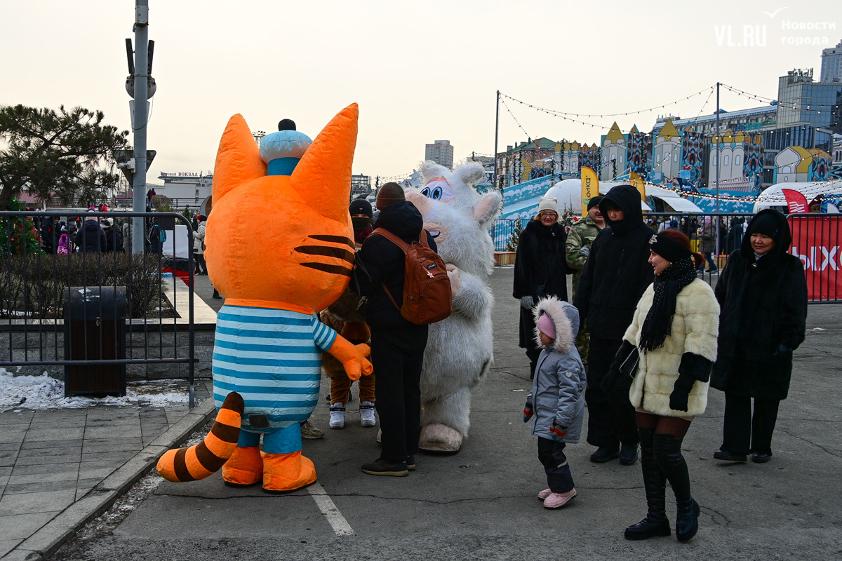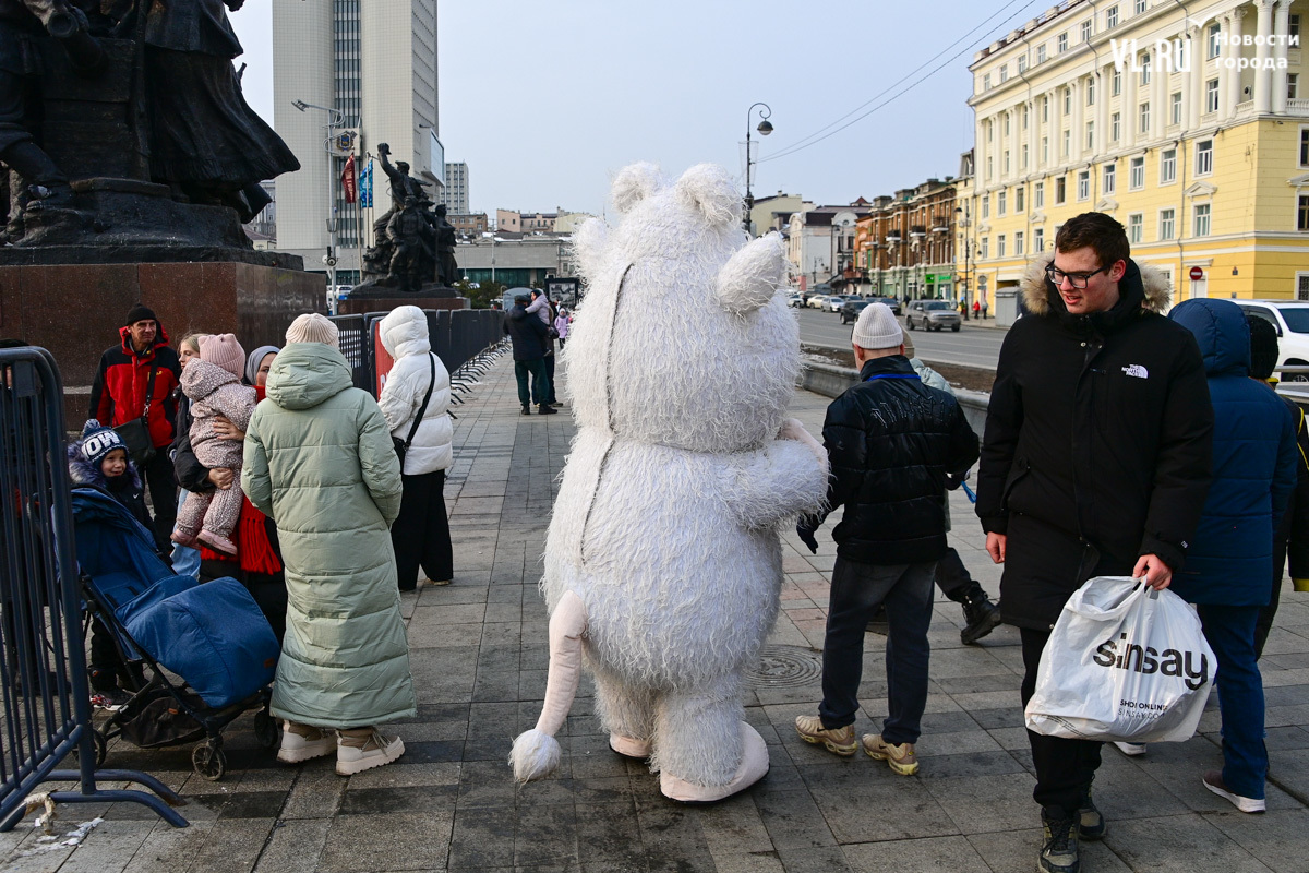 Пока идут новогодние гулянья, на центральной площади Владивостока промышляют аниматоры в костюмах. Сначала они развлекают и обнимают гуляющих людей и их детей, а потом предлагают сфотографироваться и за фото требуют от 300 до 1000 рублей. В администрации города сообщили, что такая деятельность нелегальна.