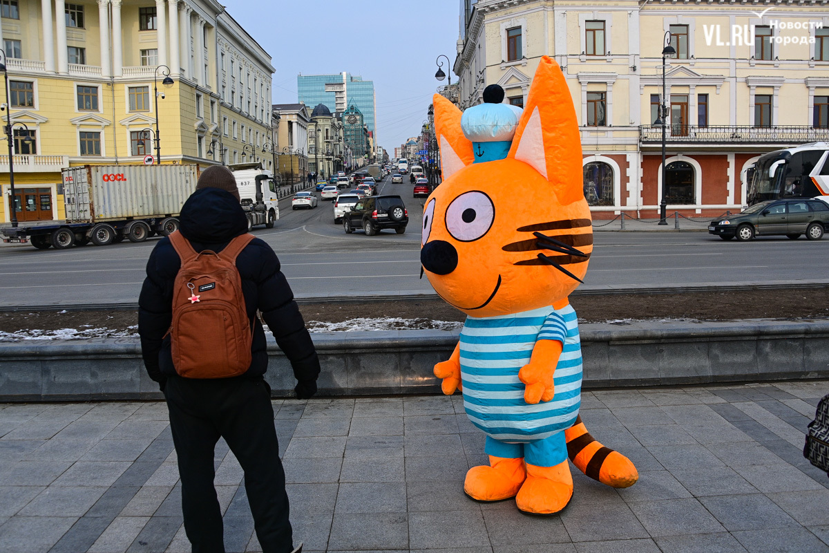 Другое дело – промоутеры, гуляющие по площади сейчас: в костюмах Муми-тролля, рыжего кота из мультфильма «Три кота», белки из «Ледникового периода» и ангела. Владивостокцы регулярно сообщают, что за фото эти персонажи требуют деньги, к тому же не предупреждают об оплате заранее.