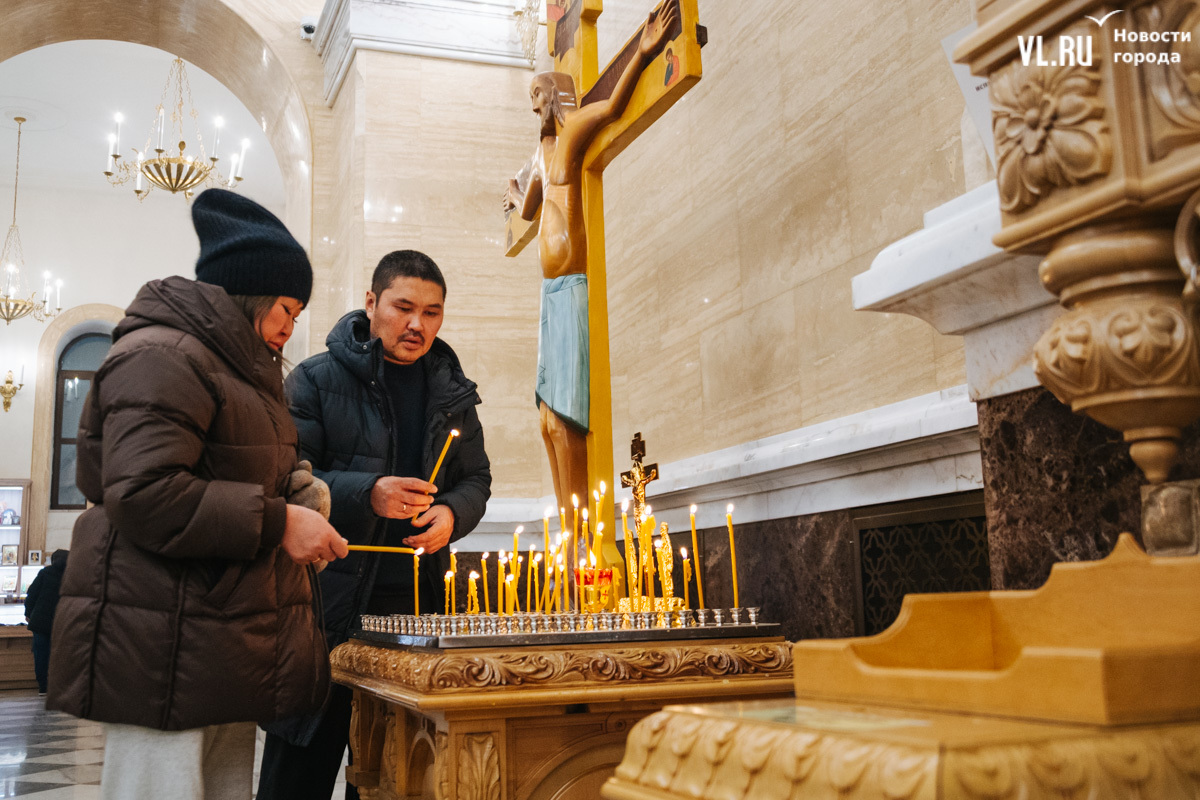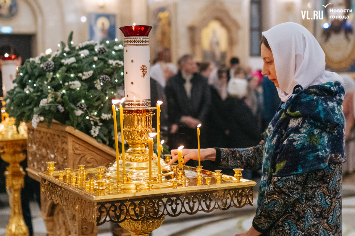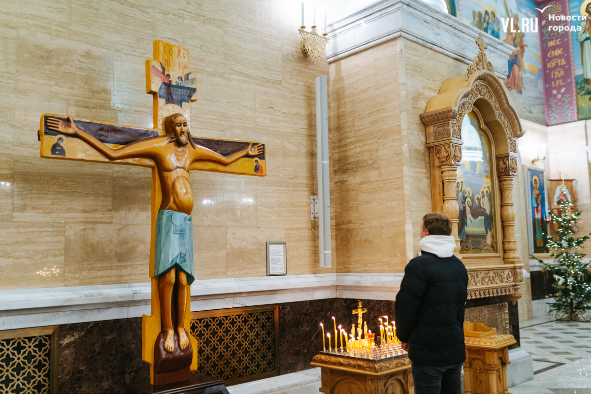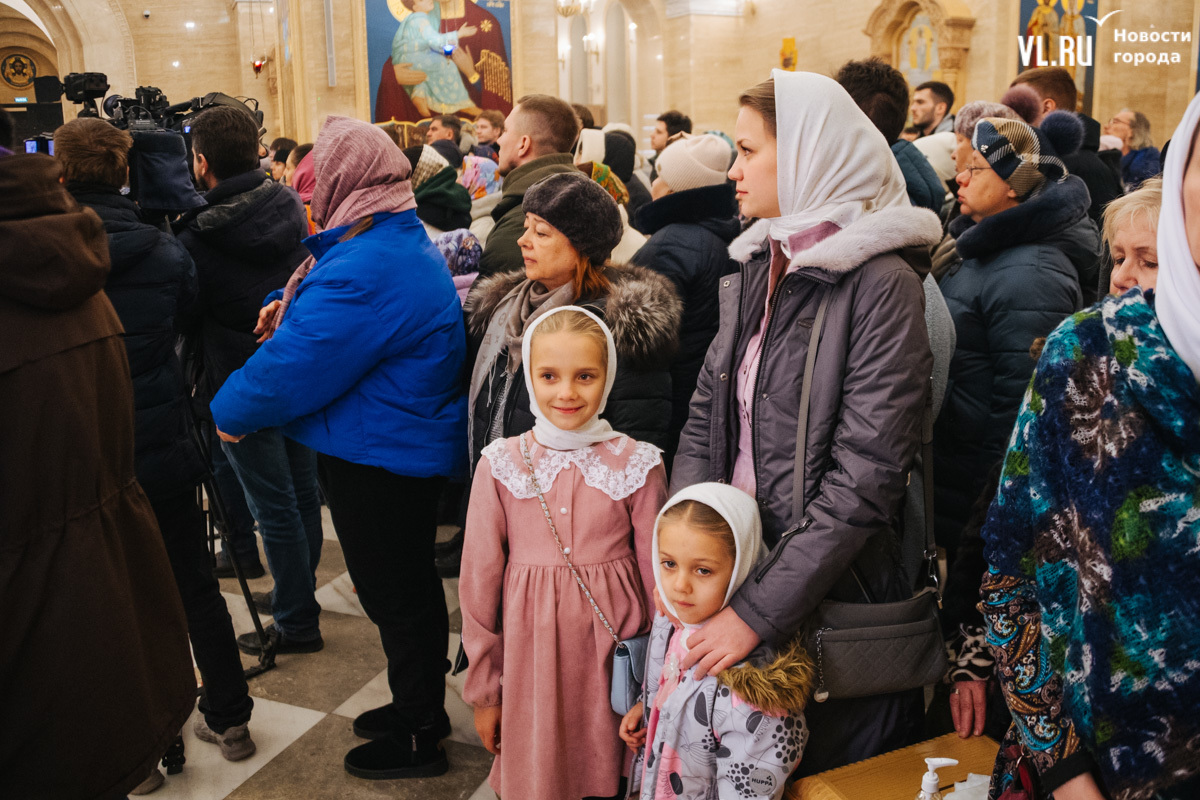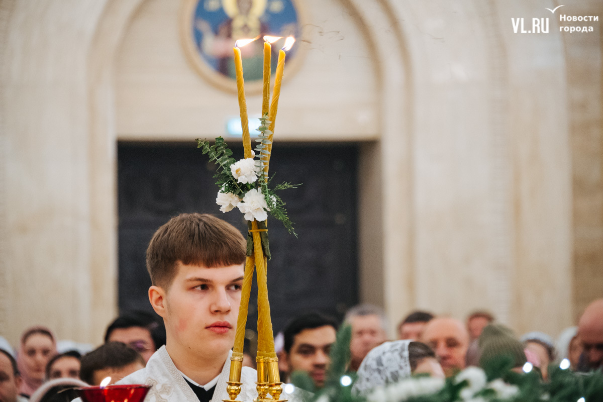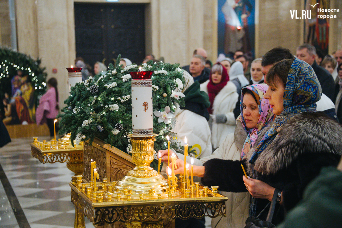 Божественная литургия прошла в ночь с 6 на 7 января в Спасо-Преображенском кафедральном соборе. Проводил её митрополит Павел, который стал главой Владивостокской епархии в октябре 2024 года. Приходили в Собор в основном взрослые люди, но были и те, кто привёл с собой детей. Рождество отмечали в храме среди наряженных новогодних ёлок и прочей атрибутики, которой, впрочем, было не очень много.