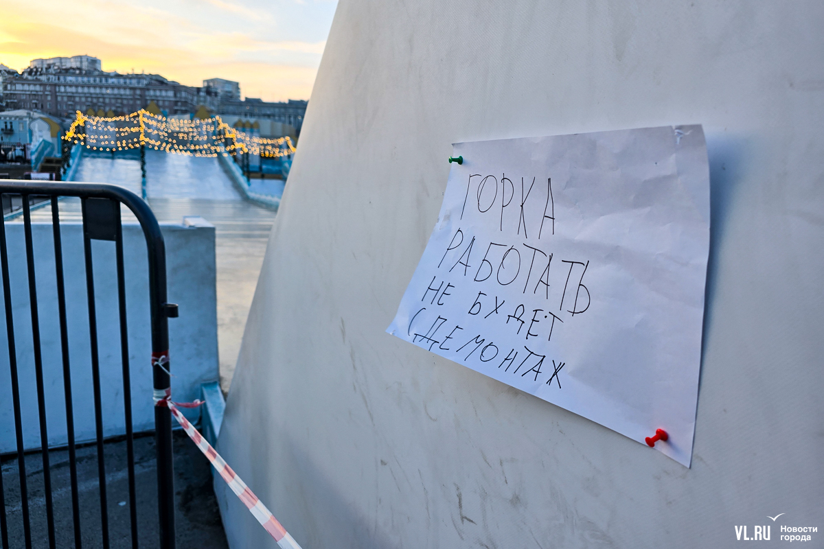Как убедился корреспондент Новостей VL.ru, веселье горку покинуло. Все подъёмы и спуски сейчас закрыты, на ней безлюдно. Рядом дежурит охранник, который подтвердил, что объявления повесили сегодня, а других подробностей он не знает.