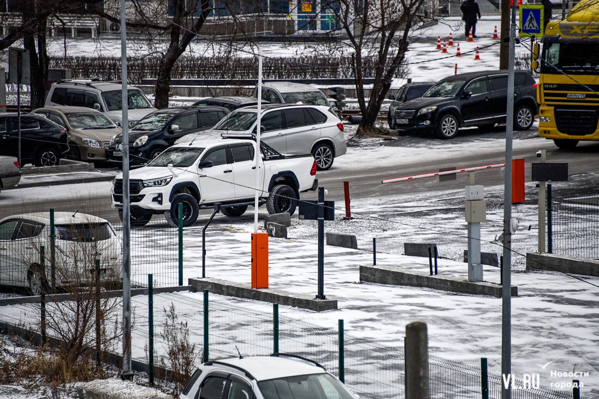 В центре Владивостока временно оказалась открытой новая большая парковка на Корабельной Набережной. Её заасфальтировали в декабре и планировали сделать платной, как только администрация установит тарифы. Однако перед праздниками шлагбаумы подняли, и пока на ней может припарковаться любой желающий. Несколько автомобилей стоит там и сегодня.