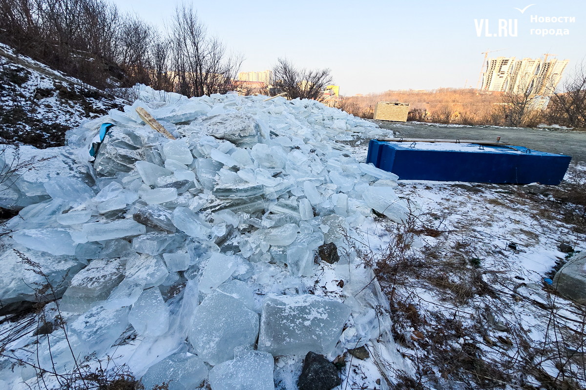 Травмоопасная детская горка с центральной площади Владивостока изменила свою форму, но не сущность – разобранная и разбитая на крупные ледяные кусочки, она оказалась на территории муниципального склада на улице Давыдова. Заезд перекрыт верёвкой, но пешком добраться до «склада льда», а значит, при желании поиграть в «царя горы», возможно, так что останки горки всё ещё представляют потенциальную опасность.