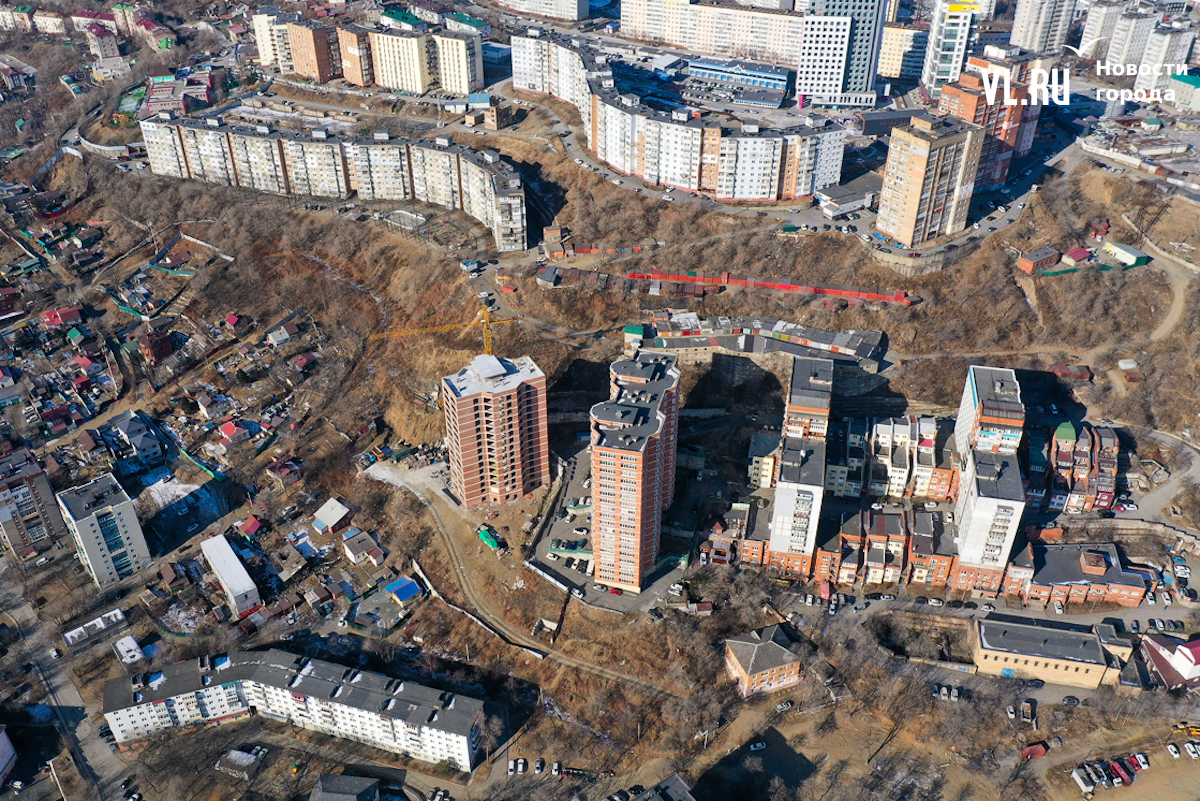 Первый дом на Зейской, 19-этажку, сдали в 2018 году, получил адрес: Зейская, 14. Сейчас идёт возведение второй очереди, проследить за его строительством на Справочнике VL.ru можно с 2019 года. Там же указано, что жилой комплекс будет состоять из 8 жилых домов. Правда, рендеров всего комплекса не представлено, поэтому не понятно, как именно их хотели разместить. Участок большой, почти 4 гектара, но расположен он на крутом склоне сопки.