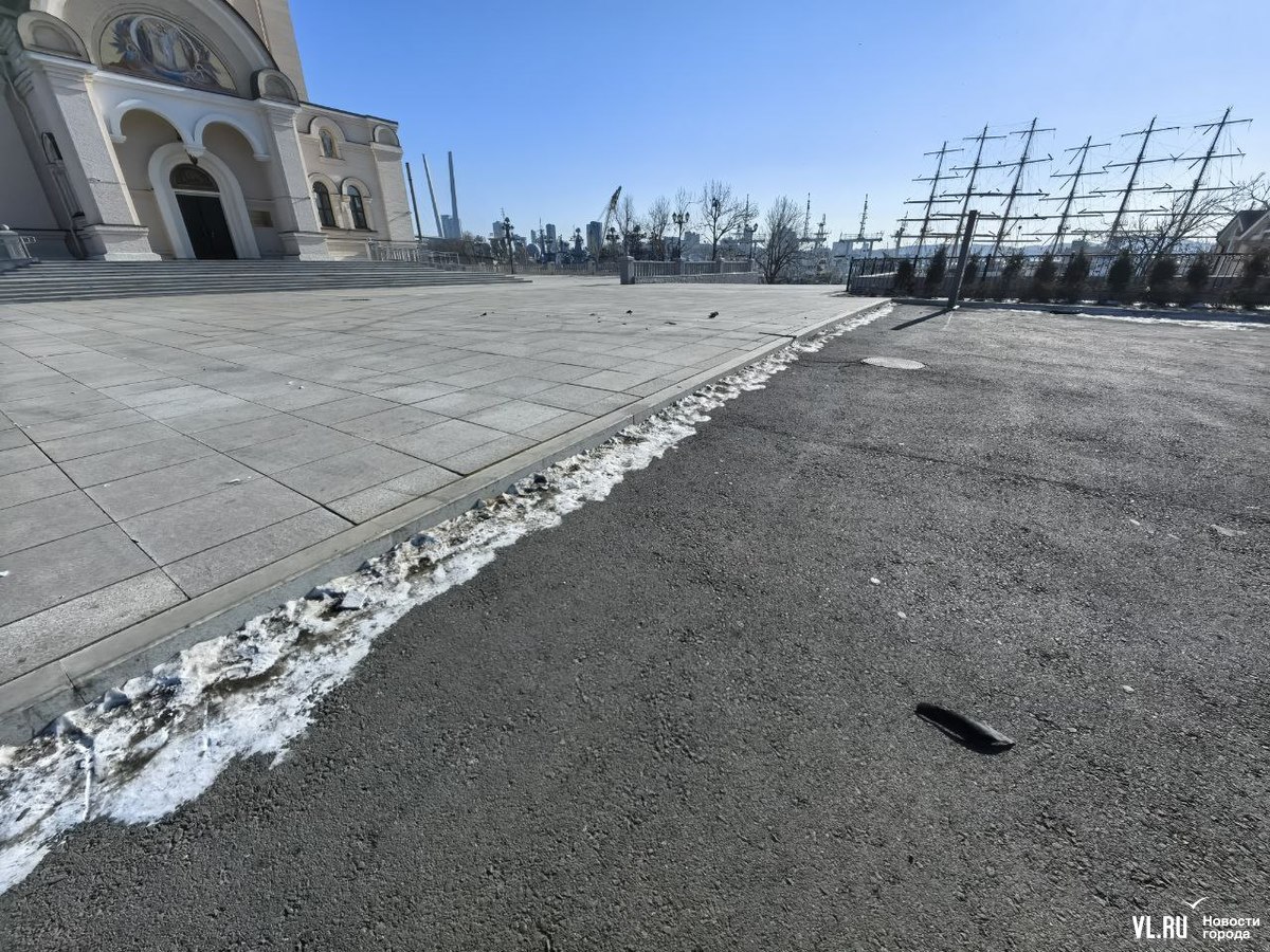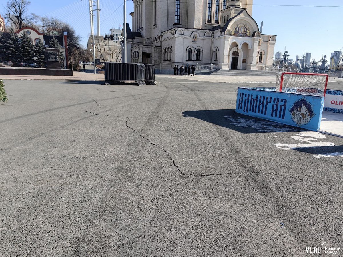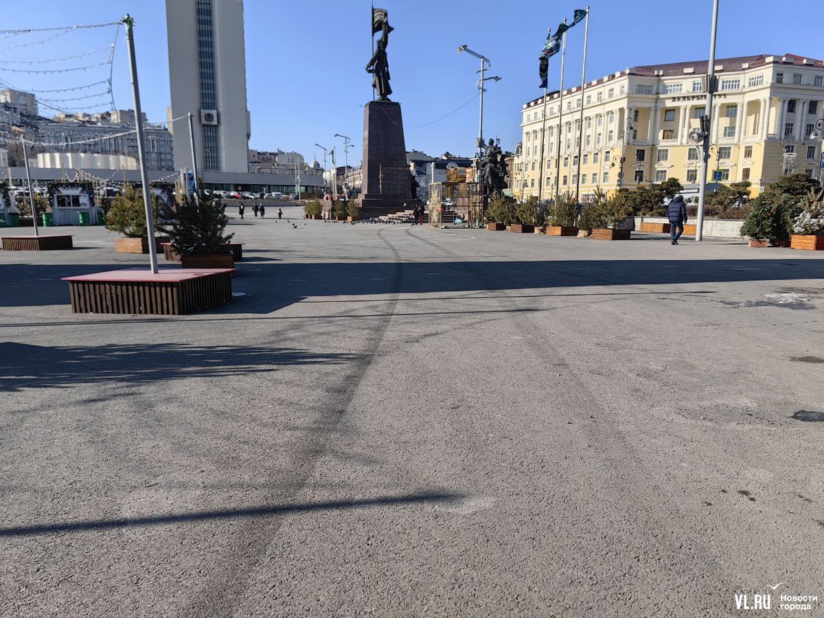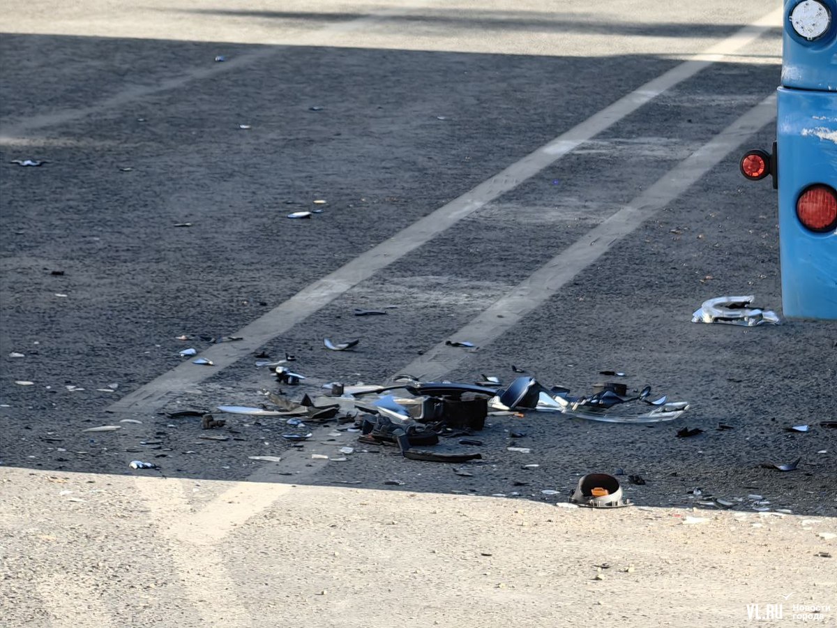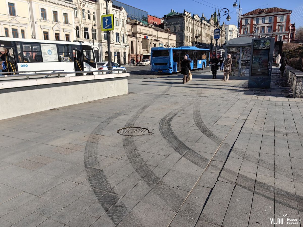 А на всём участке Светланской от площади до почтамта можно увидеть обломки внедорожника.