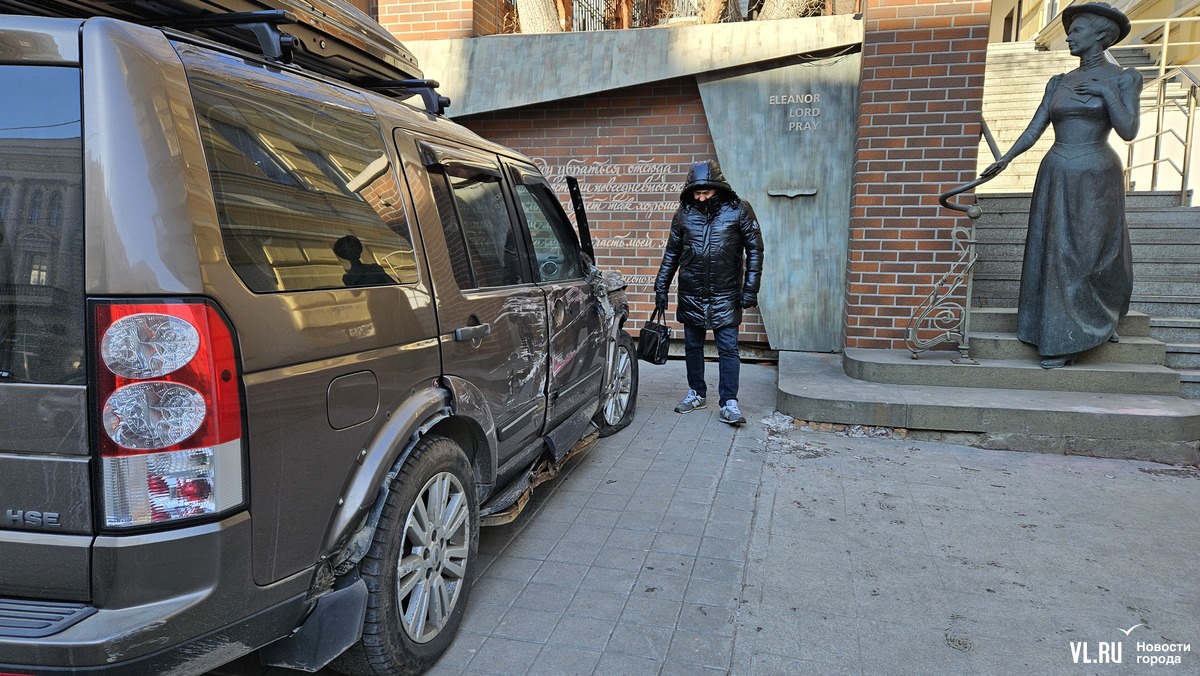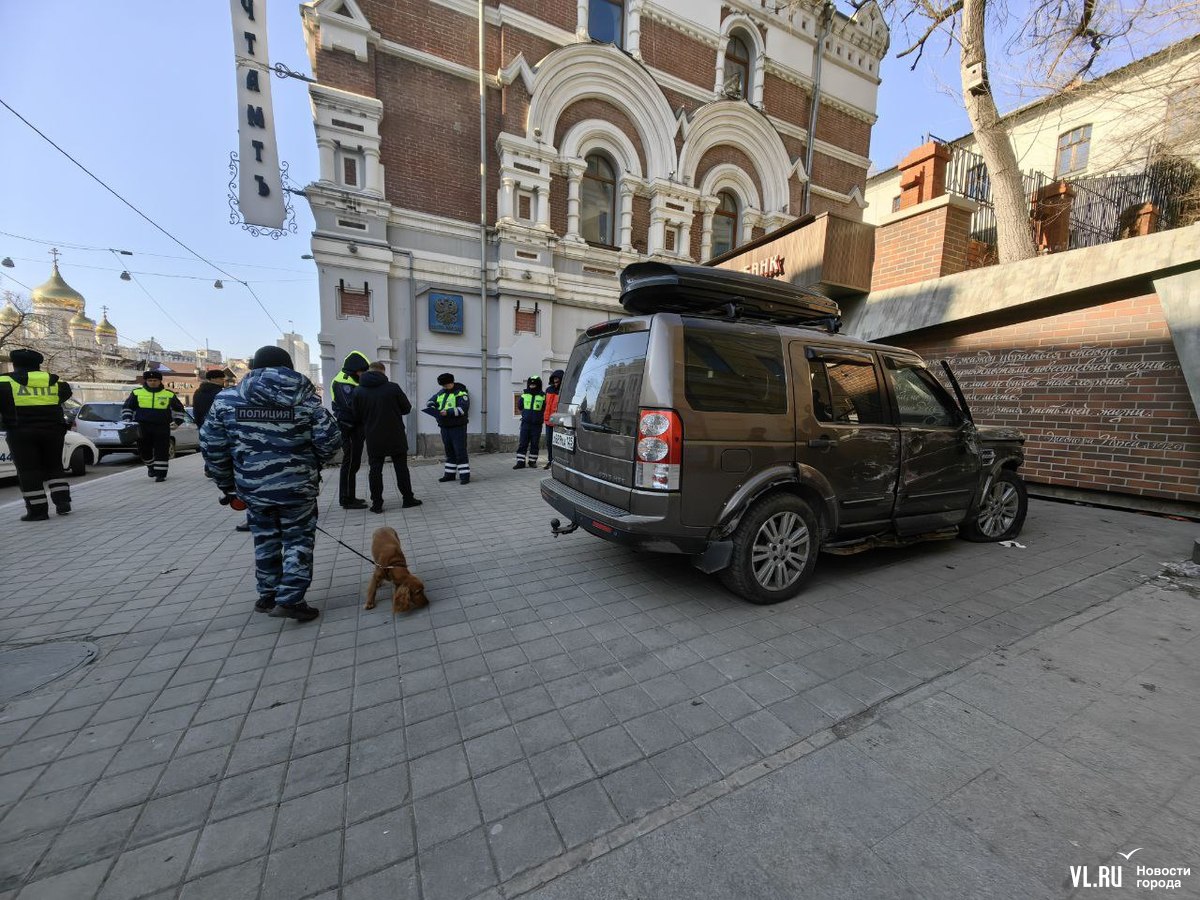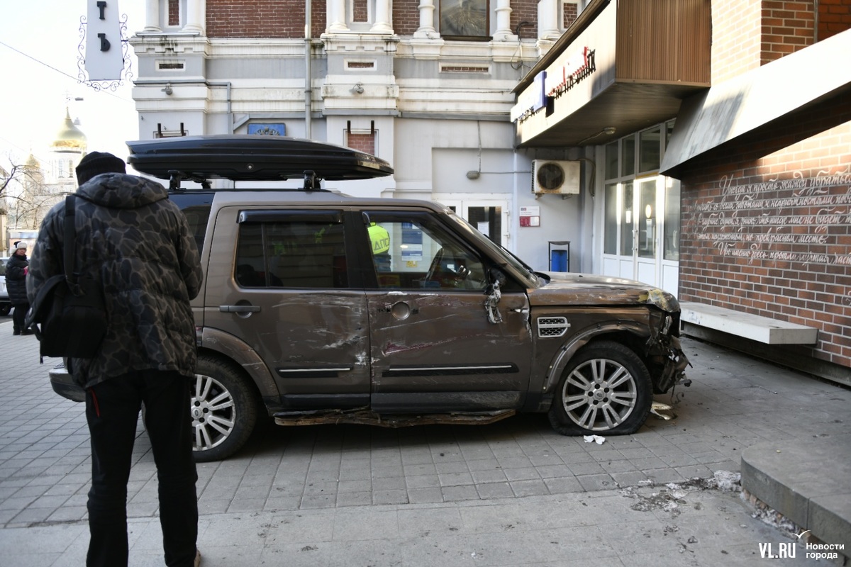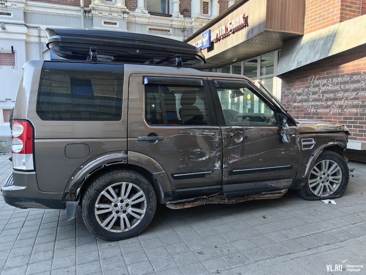 Автомобиль Land Rover врезался в маршрутный автобус, стоящий на остановке в центре Владивостока, пытался въехать в храм на площади и протаранил полицейскую машину. За ним устроили погоню несколько экипажей ДПС, улицу Светланскую перекрыли, а задержали водителя возле памятника Элеоноре Прей. Оказалось, что машину он угнал.