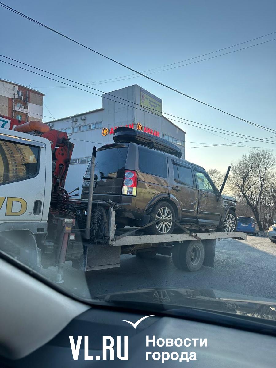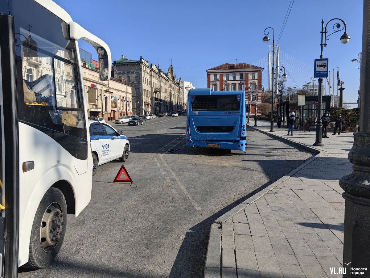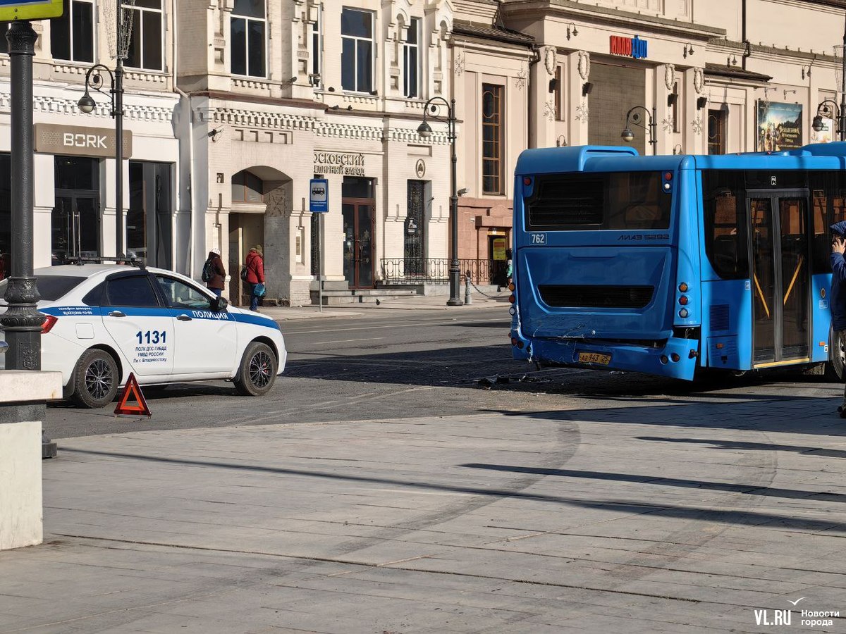 Автомобиль Land Rover врезался в маршрутный автобус, стоящий на остановке в центре Владивостока, пытался въехать в храм на площади и протаранил полицейскую машину. За ним устроили погоню несколько экипажей ДПС, улицу Светланскую перекрыли, а задержали водителя возле памятника Элеоноре Прей. Оказалось, что машину он угнал.