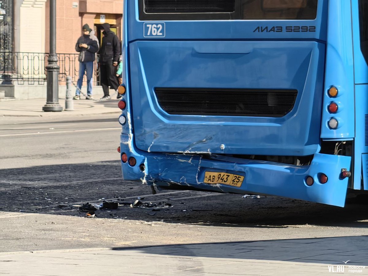 После ДТП с автобусом на площади никто из пассажиров внутри не пострадал, водитель тоже. Идёт оформление ДТП, уточнили в мэрии.