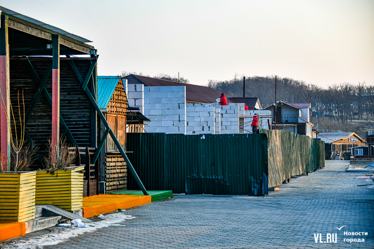 Рабочие продолжают строить новые капитальные здания во Владивостоке на одном из пляжей Шаморы на месте старых кафе – осенью здесь снесли заведения «У Марины», «Арарат» и «Пьяная курица». Кафе «Грачик» – единственное, которое работает до сих пор, даже зимой, но лишилось веранды с колоннами. Вместо этого здания в будущем планируется построить новое семейное кафе. Арендатор участка рассчитывает успеть сдать четыре капитальных одноэтажных здания, в которых можно будет разместить от 4 до 8 кафе, к маю этого года. А после этого, ближе к кафе «Скала любви», начнётся строительство новой 4-этажной гостиницы.
