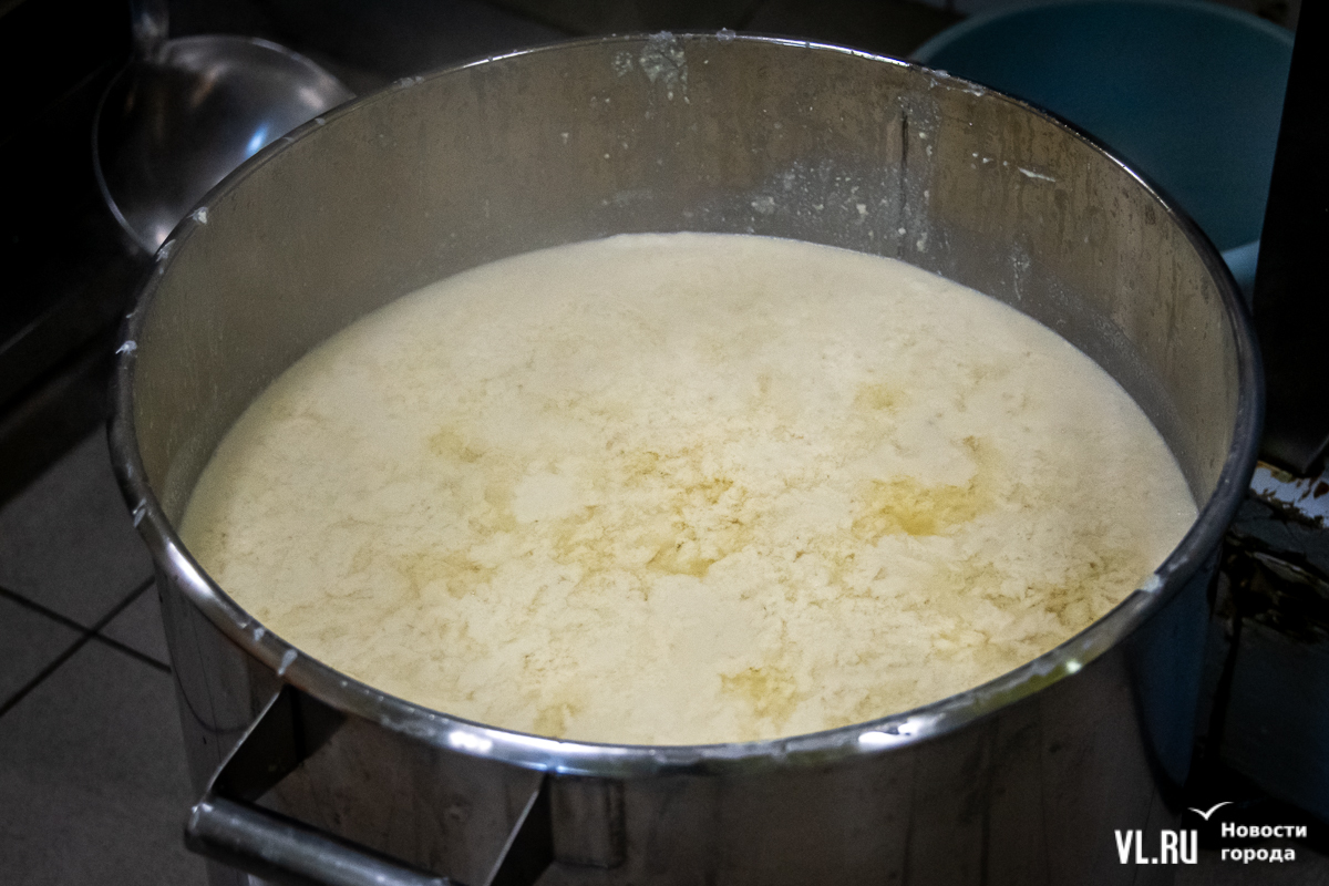 «Манная каша» уходит в центрифугу, где отделяется окара – жмых или соевая пульпа, как её называют. Позже технолог собирает окару в мешок: её бесплатно отдают фермерам для подкормки животных. Ну а молоко следует из центрифуги в ёмкость, доводится до кипения и кипит минут пять. Потом его сливают, остужают, добавляют коагулянт для сворачивания белка. В Green East работают с азиатской добавкой, обогащённой минералами и микроэлементами.