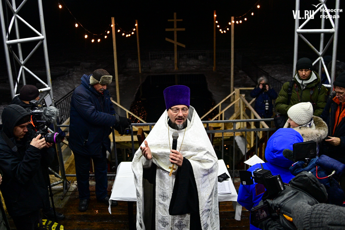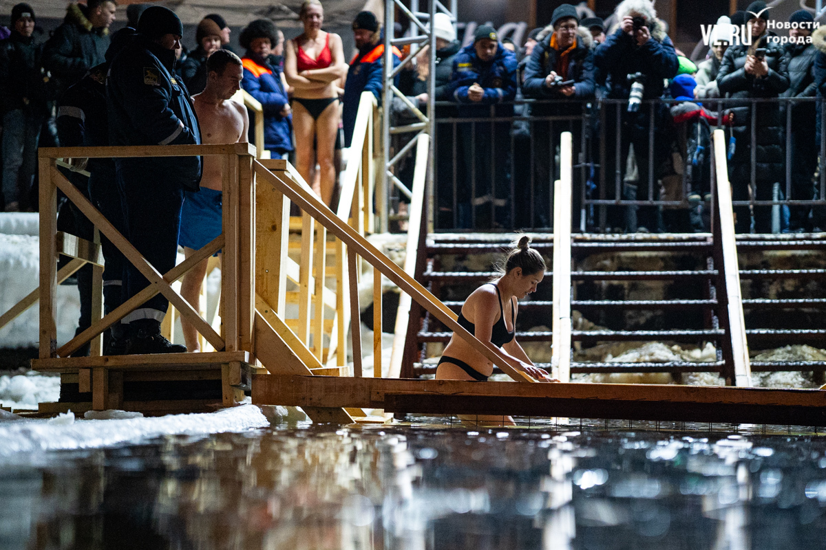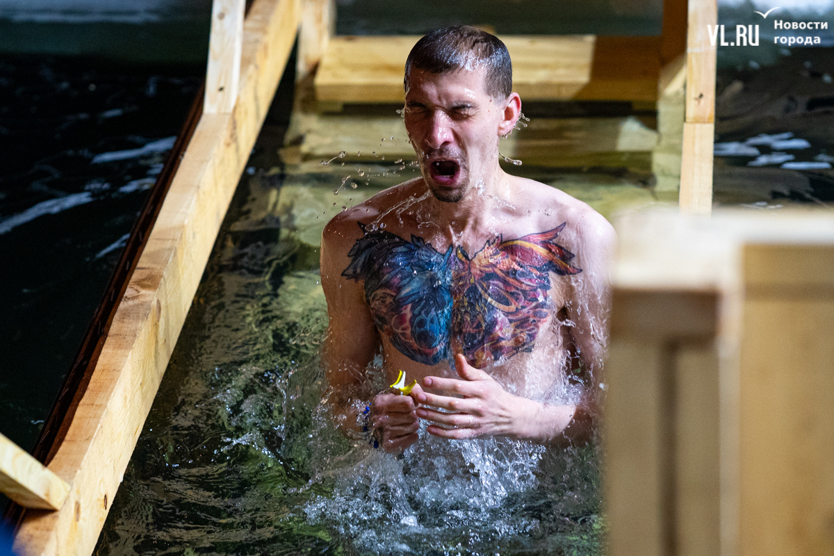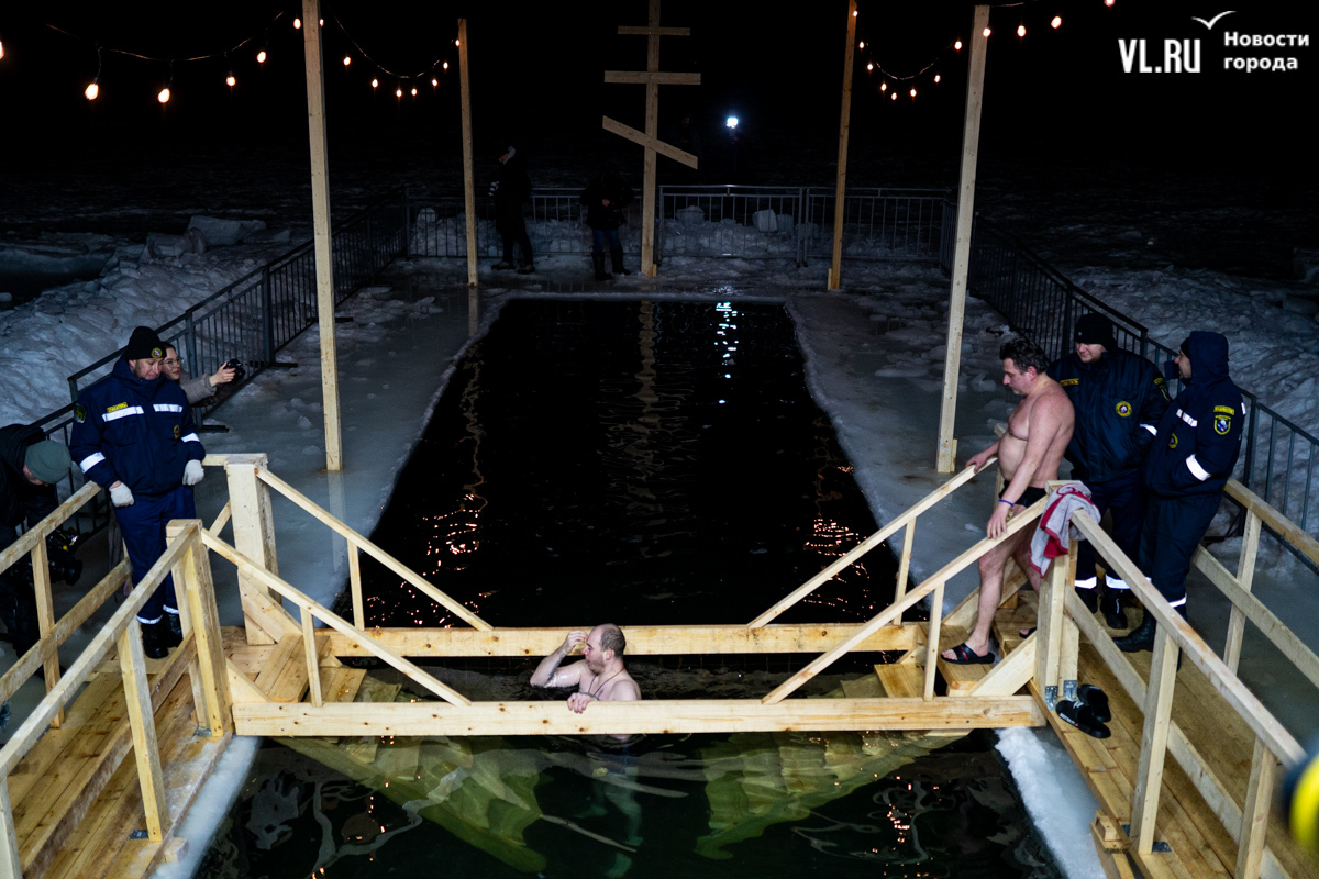 Рядом с купелью дежурили спасатели, полицейские и медики. В купель людей пускали по одному. Корреспондент Новостей VL.ru окунуться не решился. В этом его отчасти поддержал один из мимо проходящих людей.