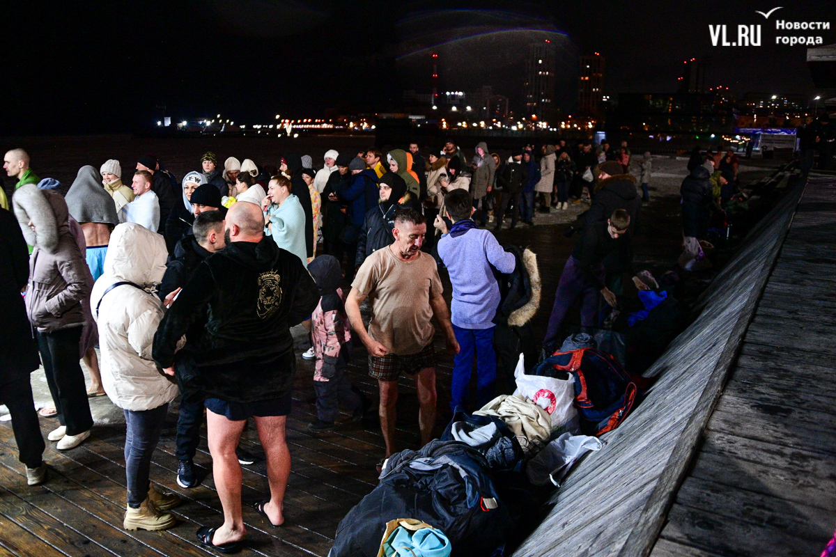 В ночь на 19 января на Юбилейном пляже во Владивостоке открылась купель. Окунуться на Крещение сюда в основном пришли люди, которые делают это по традиции или чтобы проверить себя. Пускали в воду не всех, например, пловца в ластах и маске и выпившего мужчину, который пришёл, чтобы протрезветь.