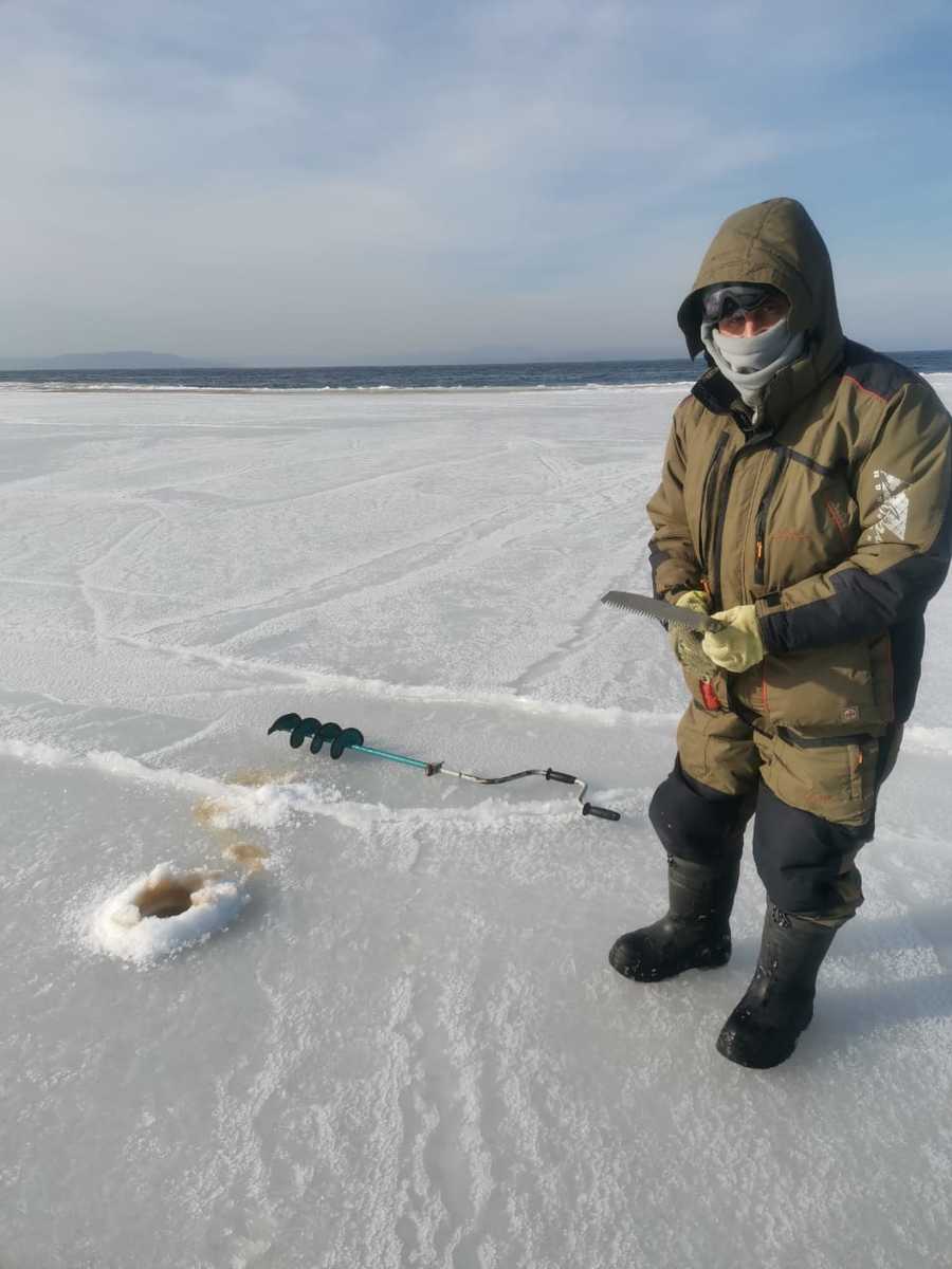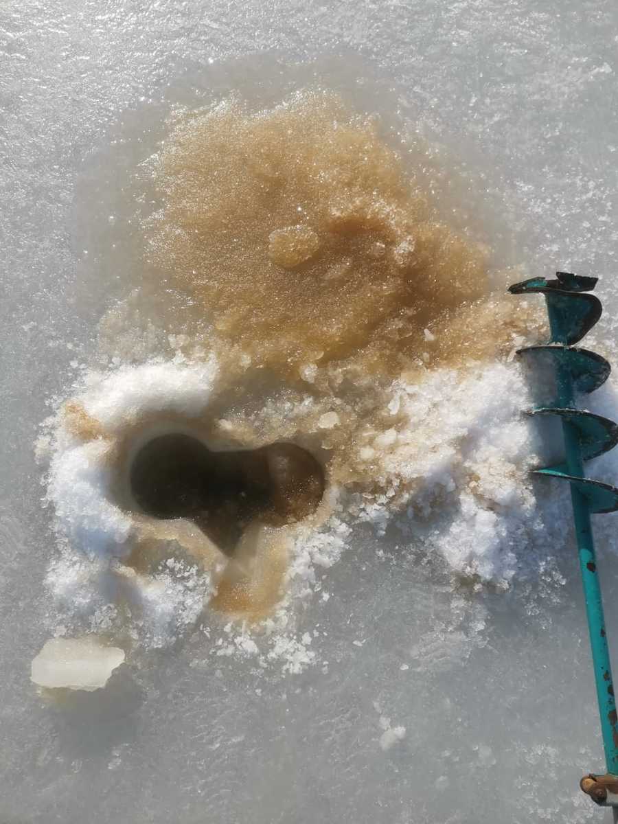 Вчера читатель Новостей VL.ru рассказал, что на пляже у станции Чайка (в районе Пальчевского, 3) море подо льдом стало рыжего цвета. Лёд сверху чистый, а в пяти-шести сантиметрах от воды – тёмный. Мужчина сделал четыре лунки в разных местах, примерно в 50 метрах друг от друга, и везде было одно и то же.