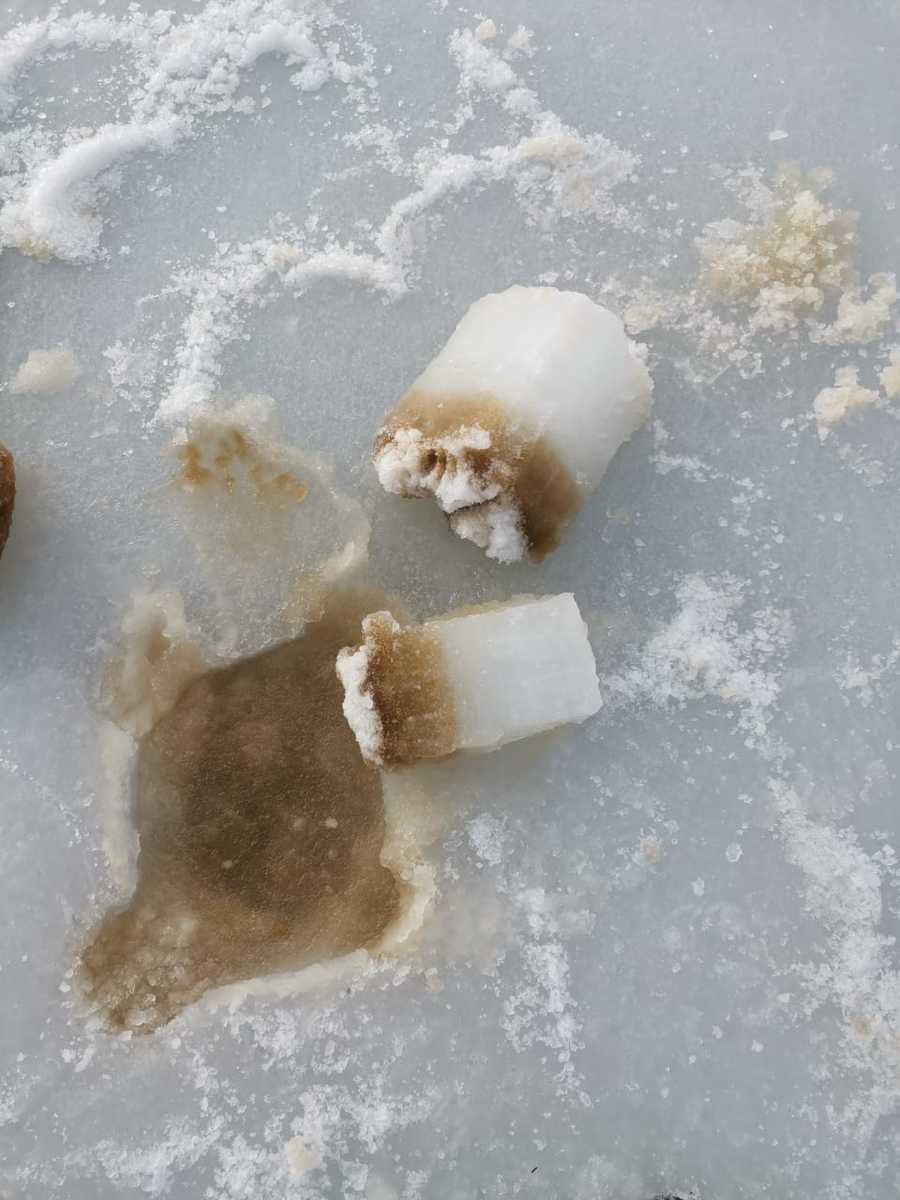 «Микроводоросли Thalassiosira содержат пигменты, которые окрашивают их тельца в буро-коричневый цвет (подобно тому, как окрашены крупные бурые водоросли (пример – хорошо всем известная водоросль ламинария). Концентрация микроводорослей достигает нескольких миллионов клеток в литре воды, и именно благодаря этому вода и нижняя часть льда окрашены в бурый цвет. Рыбаки и горожане могут быть спокойны. Эти микроводоросли не ядовитые, и опасности нет», – отмечают в ННЦМБ.