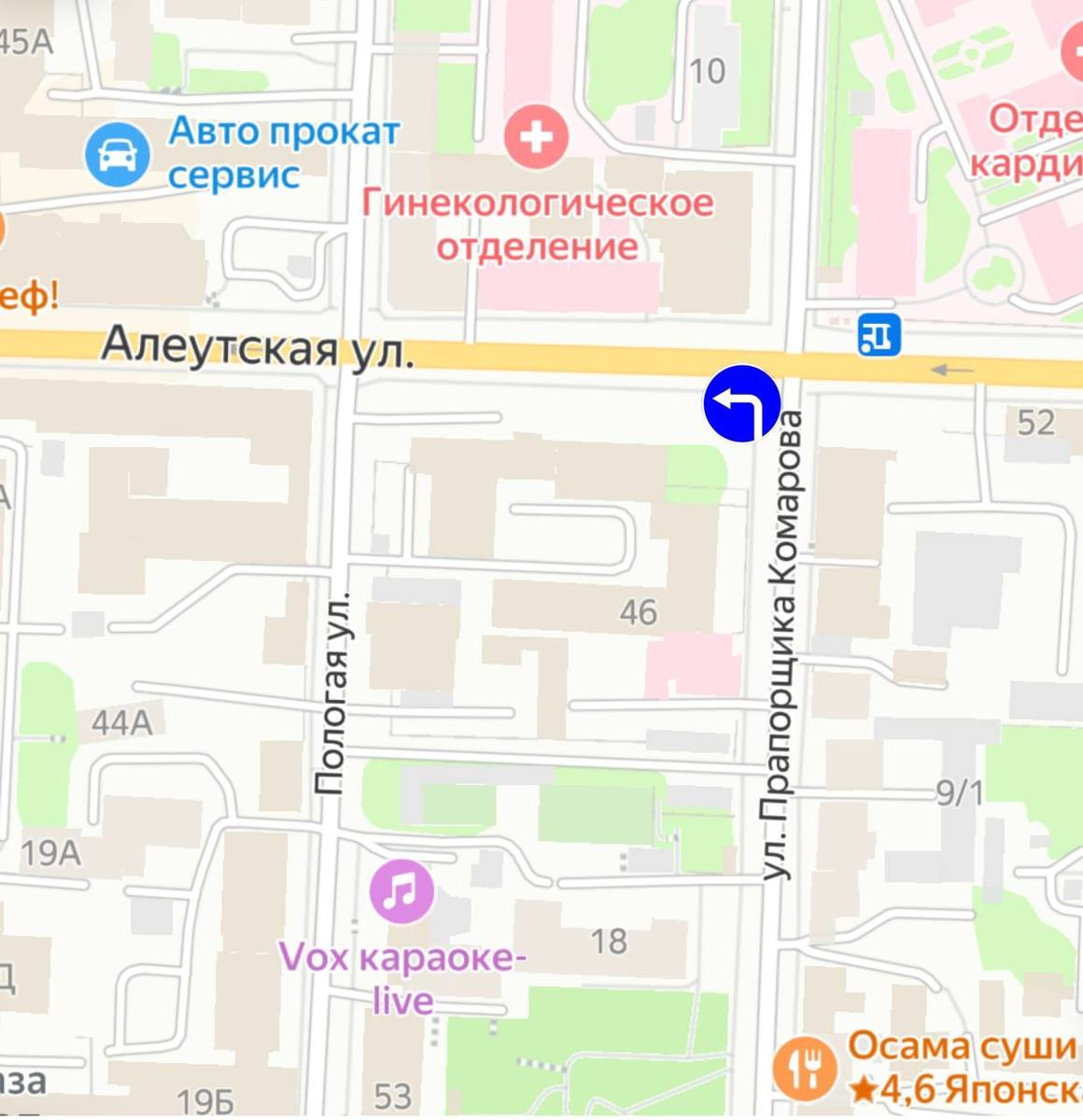 На этом перекрёстке действительно регулярно происходят ДТП различной степени тяжести. Зачастую водителям, которые едут сверху по Комарова прямо, просто не хватает времени светофора, который пропускает пешеходов на Алеутской. Последняя такая авария произошла три дня назад, 21 января, — прямо посередине Алеутской тогда столкнулись Hyundai Tucson и Toyota Crown.