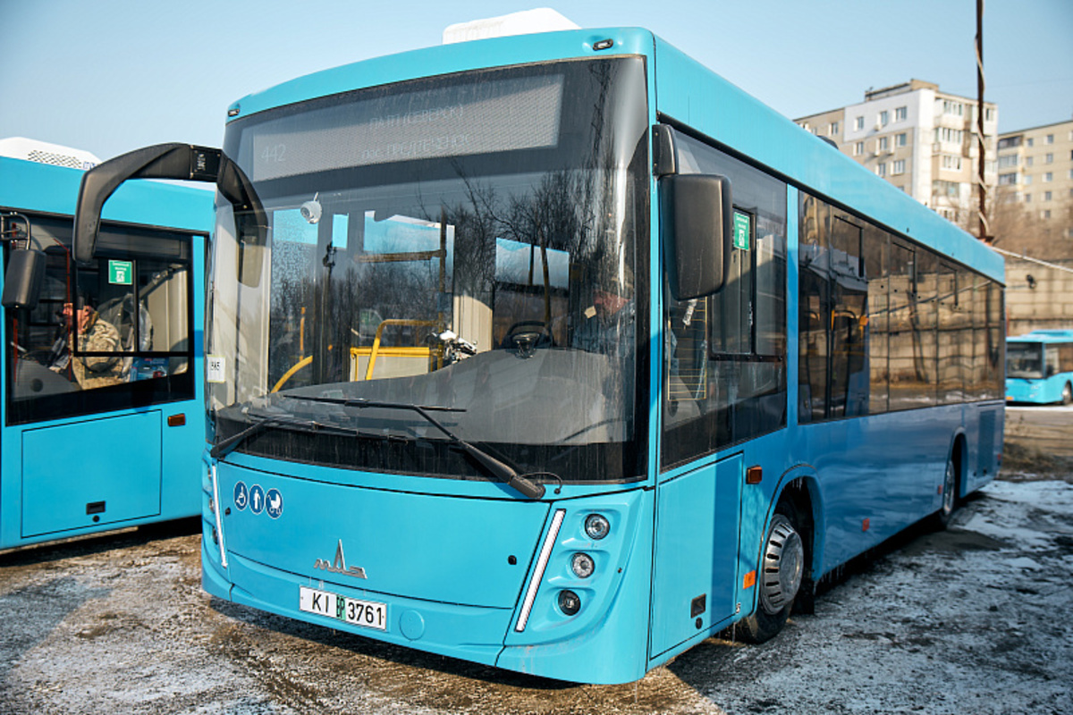 Во Владивосток поступили 24 новых пассажирских автобуса производства белорусского завода МАЗ, в следующем месяце город получит ещё шесть единиц транспорта. Новые машины большого и среднего класса пополняют автопарк муниципального транспортного предприятия «ВПОПАТ № 1». На маршруты они выйдут не раньше апреля – технику предстоит ещё зарегистрировать и дооснастить.