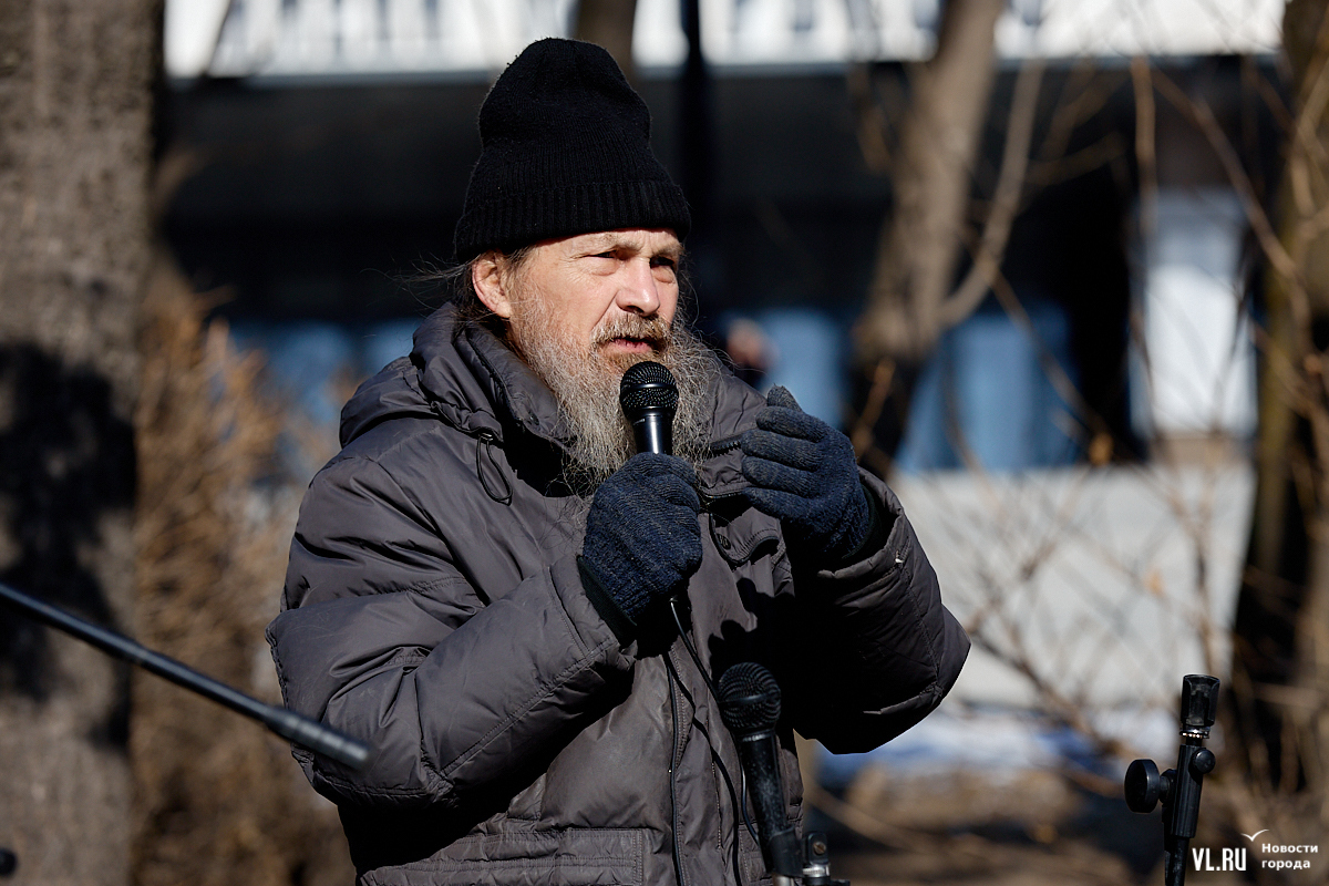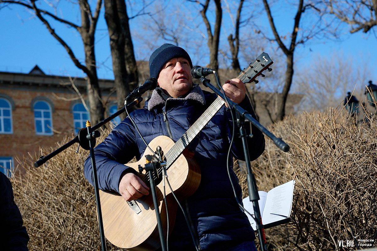 Сергей, бард из Артёма, рассказал, что хотя бы раз в год приезжает к памятнику Высоцкого, чтобы поучаствовать в концерте, и для него это очень важно.