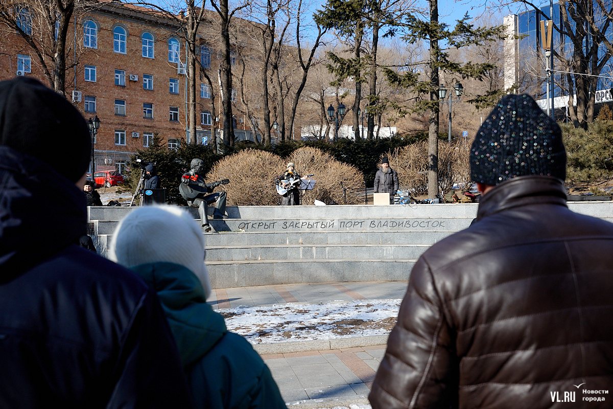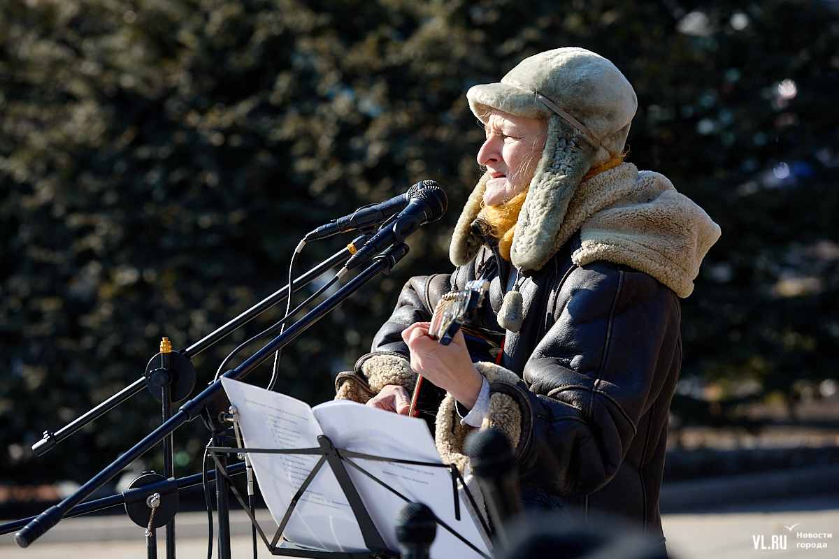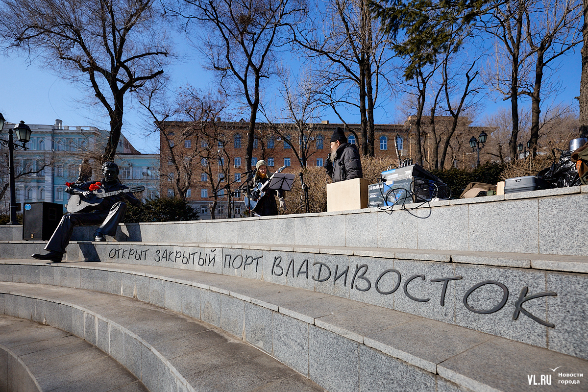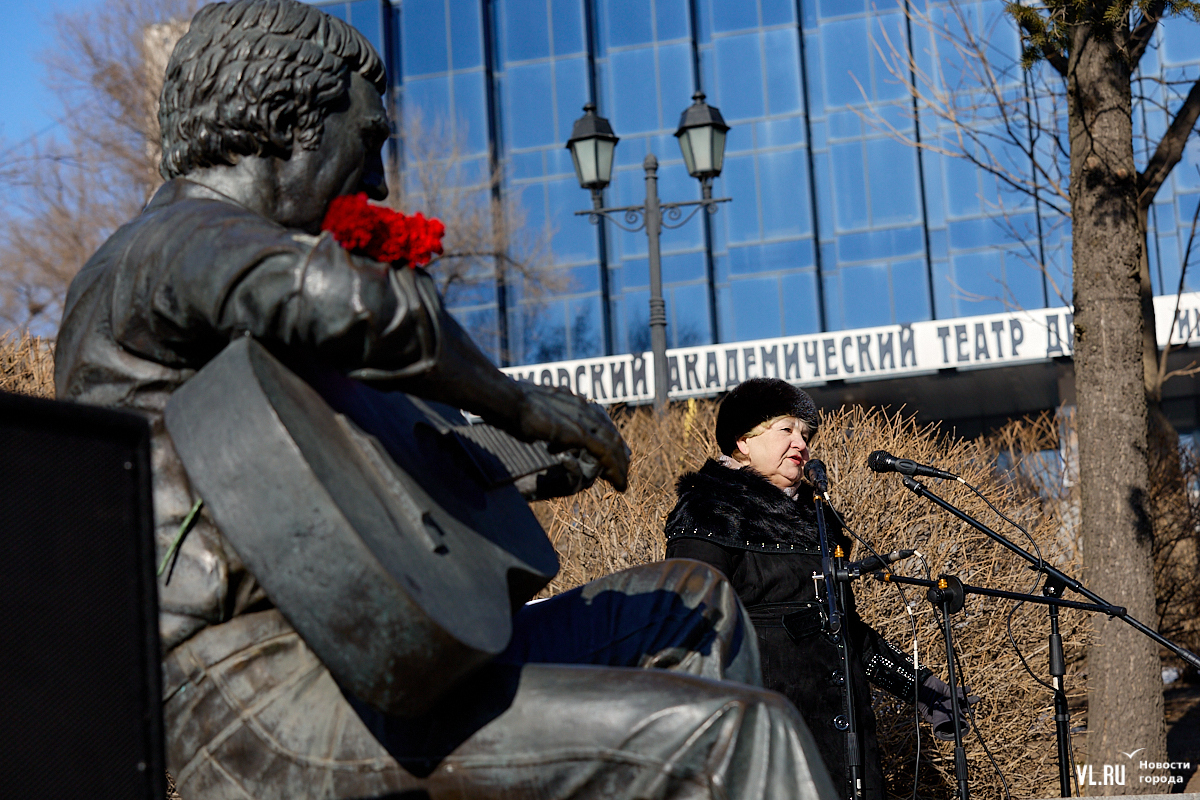 Больше 50 человек собрались в субботу, 25 января, в Театральном сквере во Владивостоке на традиционный концерт, посвящённый Владимиру Высоцкому. Сегодня музыканту, поэту и актёру могло бы исполниться 87 лет. Поклонники его творчества в память о нём читали стихотворения и пели песни под гитару.