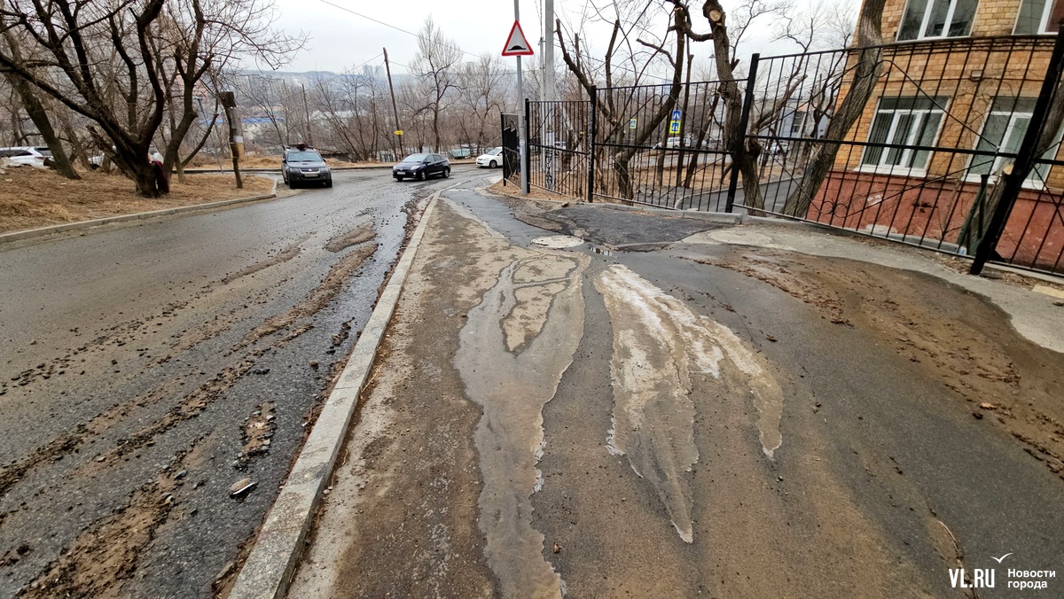 Жители улицы Ватутина во Владивостоке пожаловались на серьёзную течь – вода стекала по косогору и частично затопила дорогу около лицея № 41. Днём в понедельник, 27 января, поток воды остановили – в Примводоканале уточнили, что аварийная служба прочистила засор на территории наземной автостоянки. Он возник из-за того, что канализация забилась твёрдым бытовым мусором.