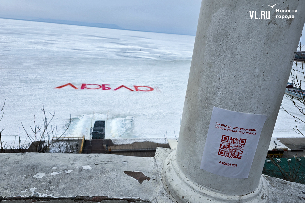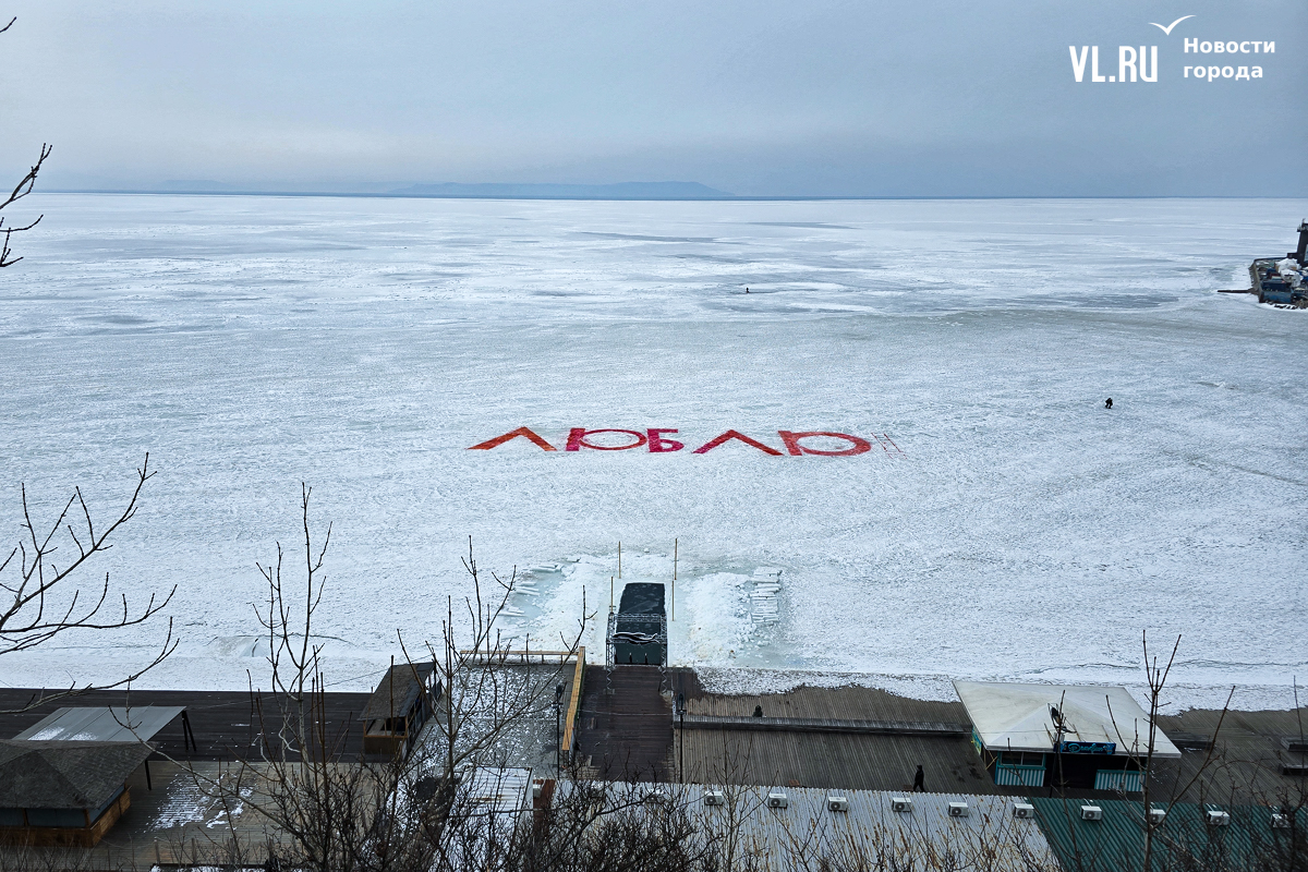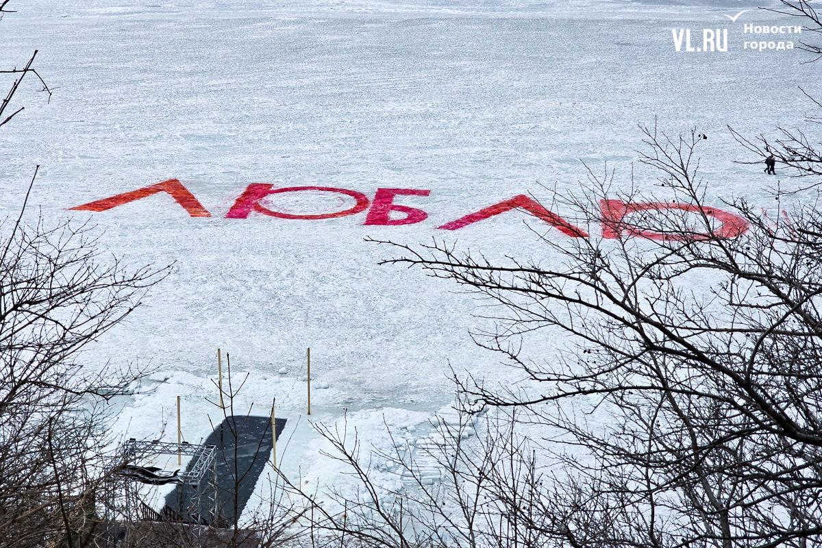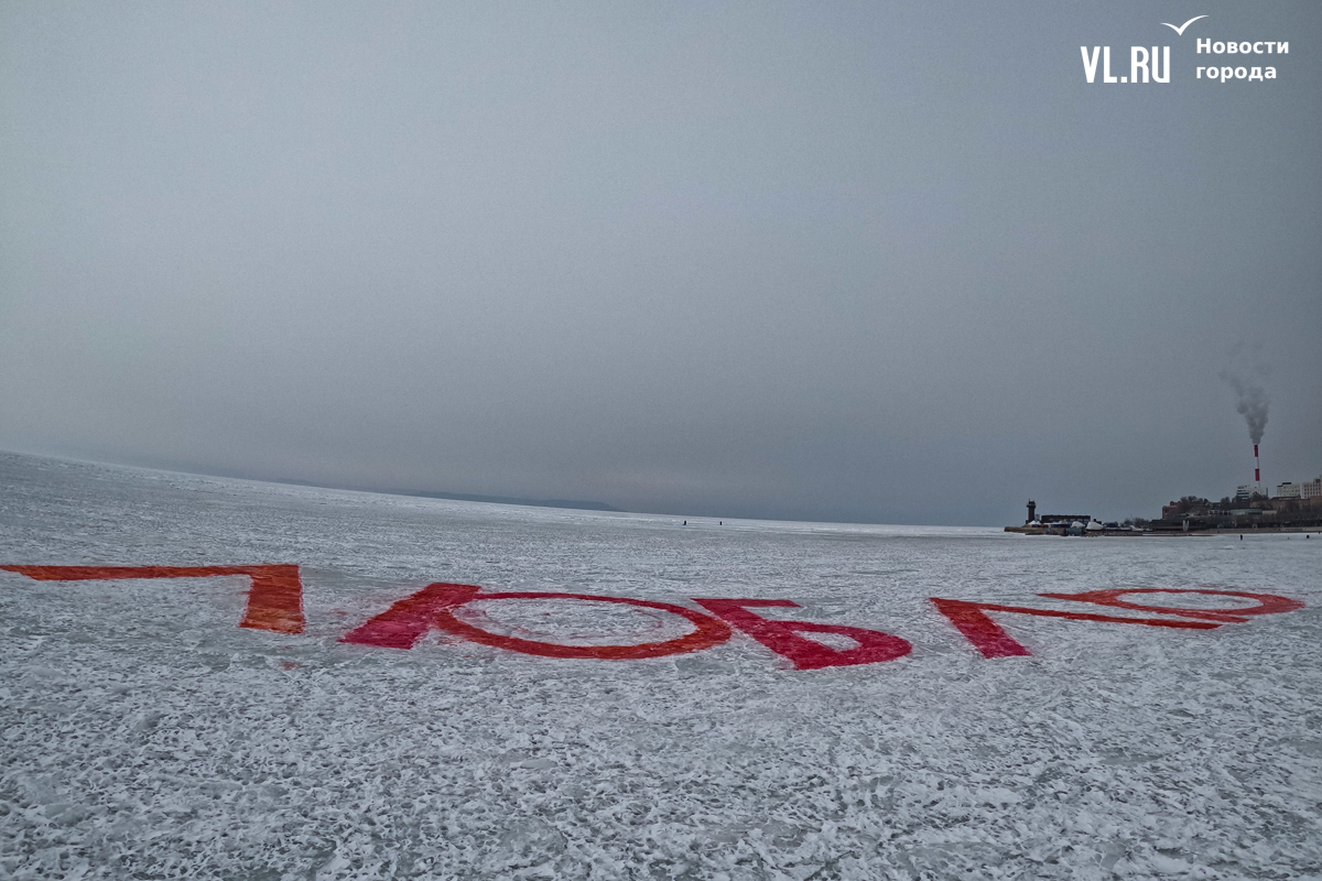 В ночь на 27 января на льду Амурского залива во Владивостоке появилось огромное слово «Люблю», нанесённое красной краской таким образом, чтобы его было хорошо видно с улицы Набережной. Своеобразный арт-объект привлёк внимание горожан, и фотографии с ним разлетелись по соцсетям. Однако оказалось, что это не признание в любви к кому-то конкретному, а реклама коллекции одежды, которую хотят запустить в День всех влюблённых. Ранее этой же рекламой успели разрисовать в городе несколько стен и подземный переход.